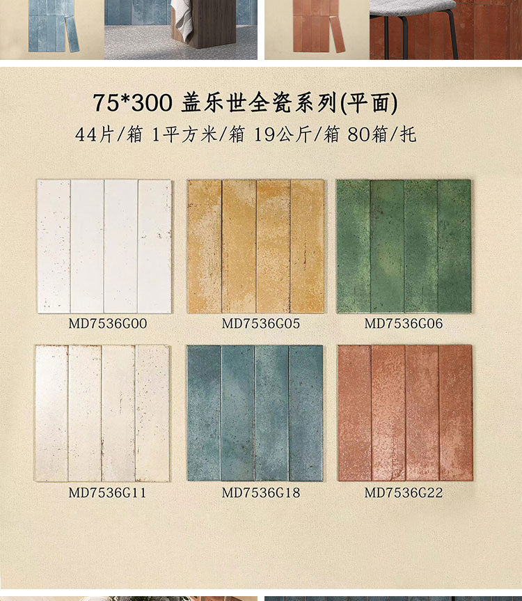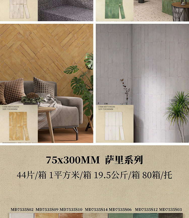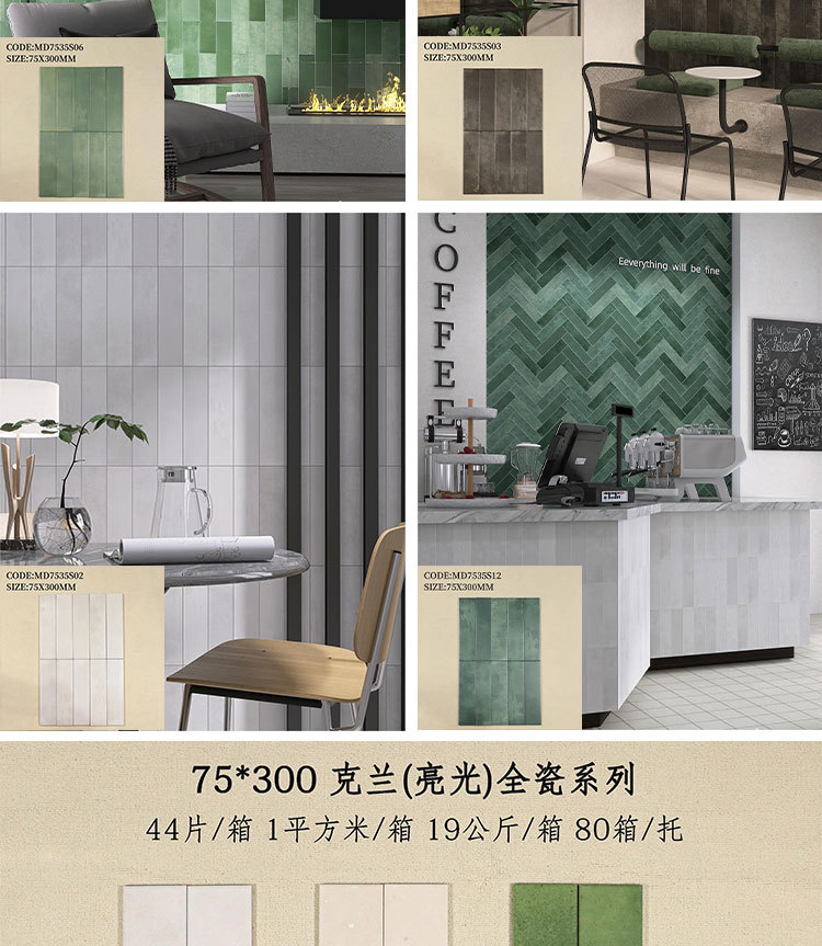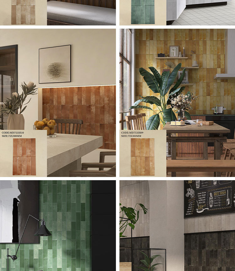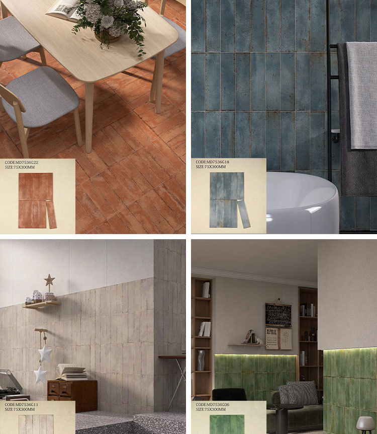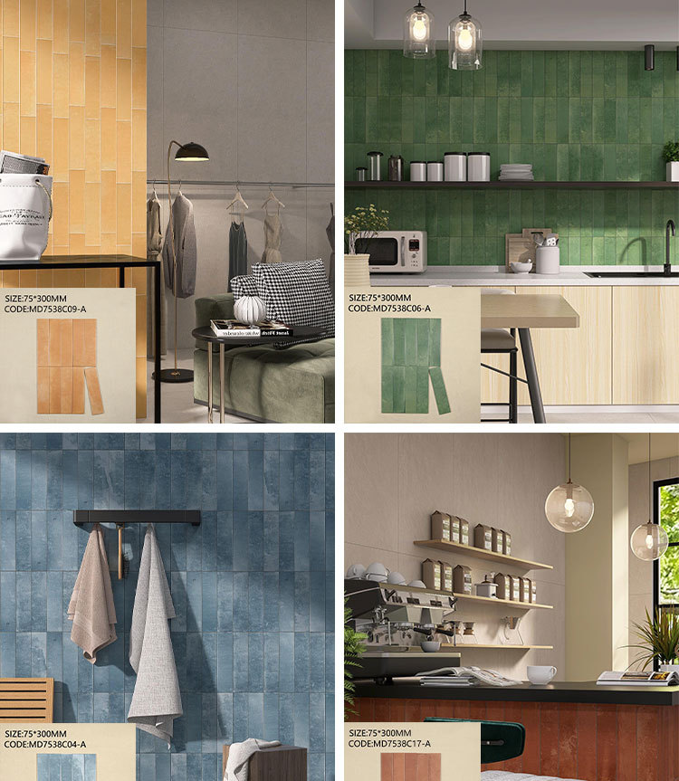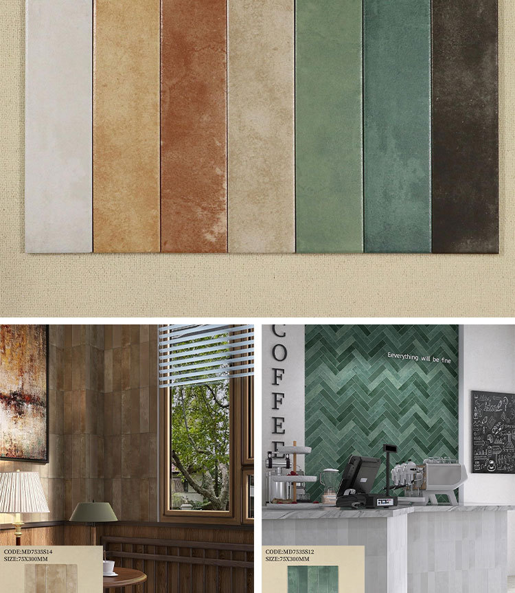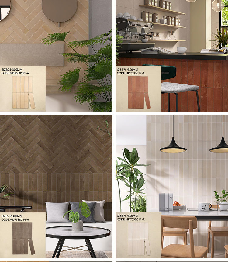 Винтажный длинный кирпич 75x300 однотонный для кухни, ванной, марокканского ресторана, магазина молочного чая, бара, стен