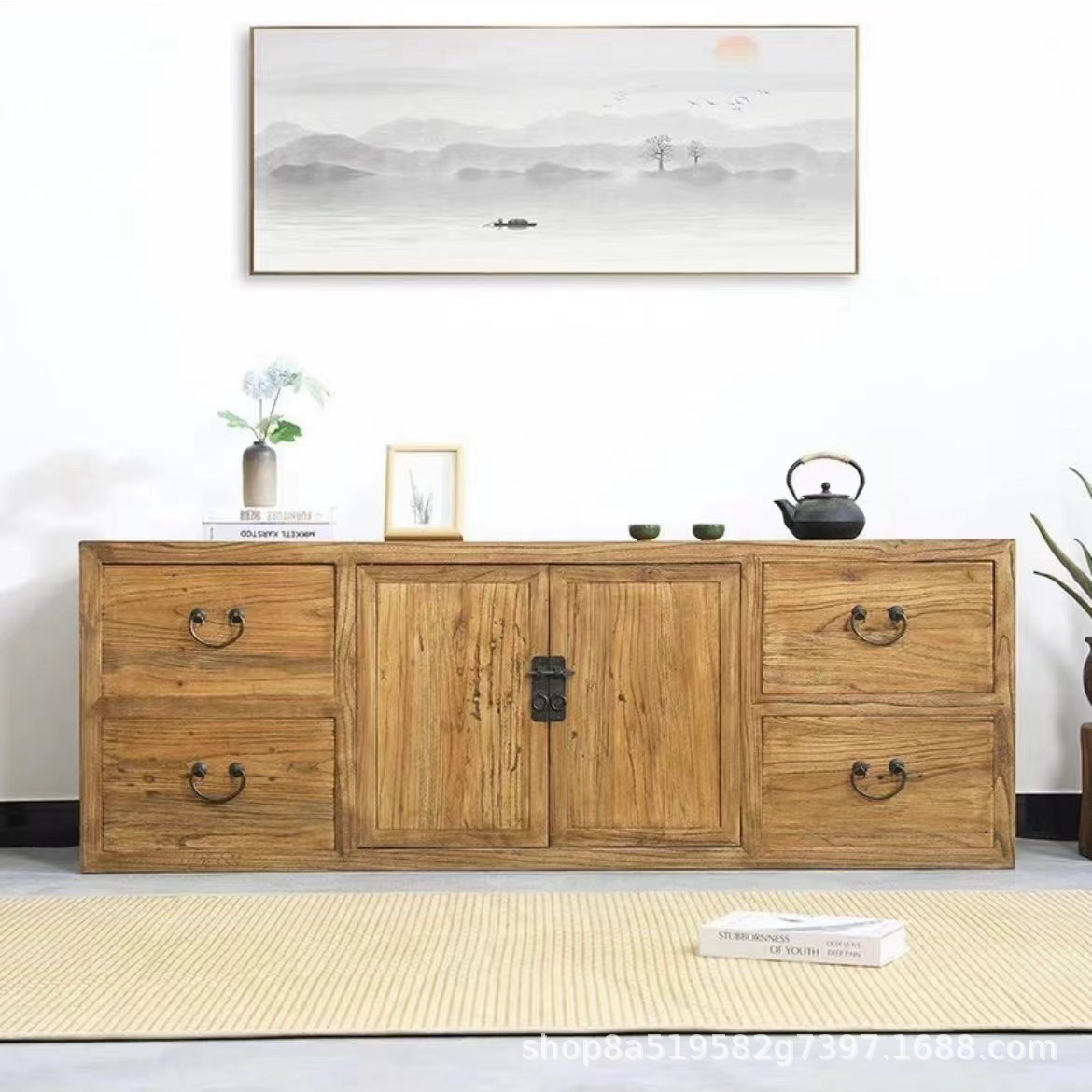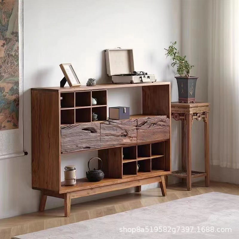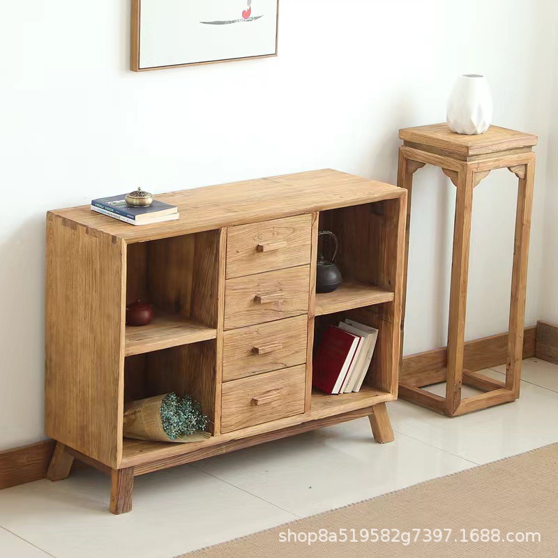 Новый китайский стиль Старый ясень Боковой шкаф Декоративный шкаф Многоуровневый шкаф