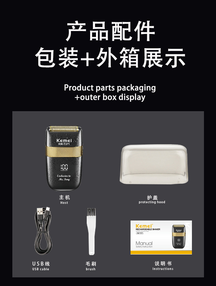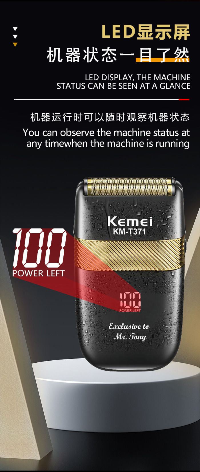 Kemei Km-T371 электрическая бритва ротационная бритва для бороды перезаряжаемая моющаяся бритва с цифровым дисплеем