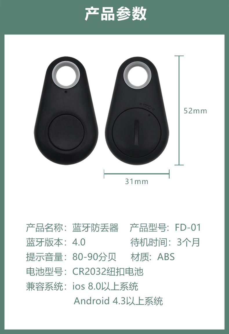 Кросс-бордерное умное Bluetooth устройство против потери в форме капли, локатор для отслеживания предметов, ключей, кошельков, двусторонний сигнал тревоги для домашних животных