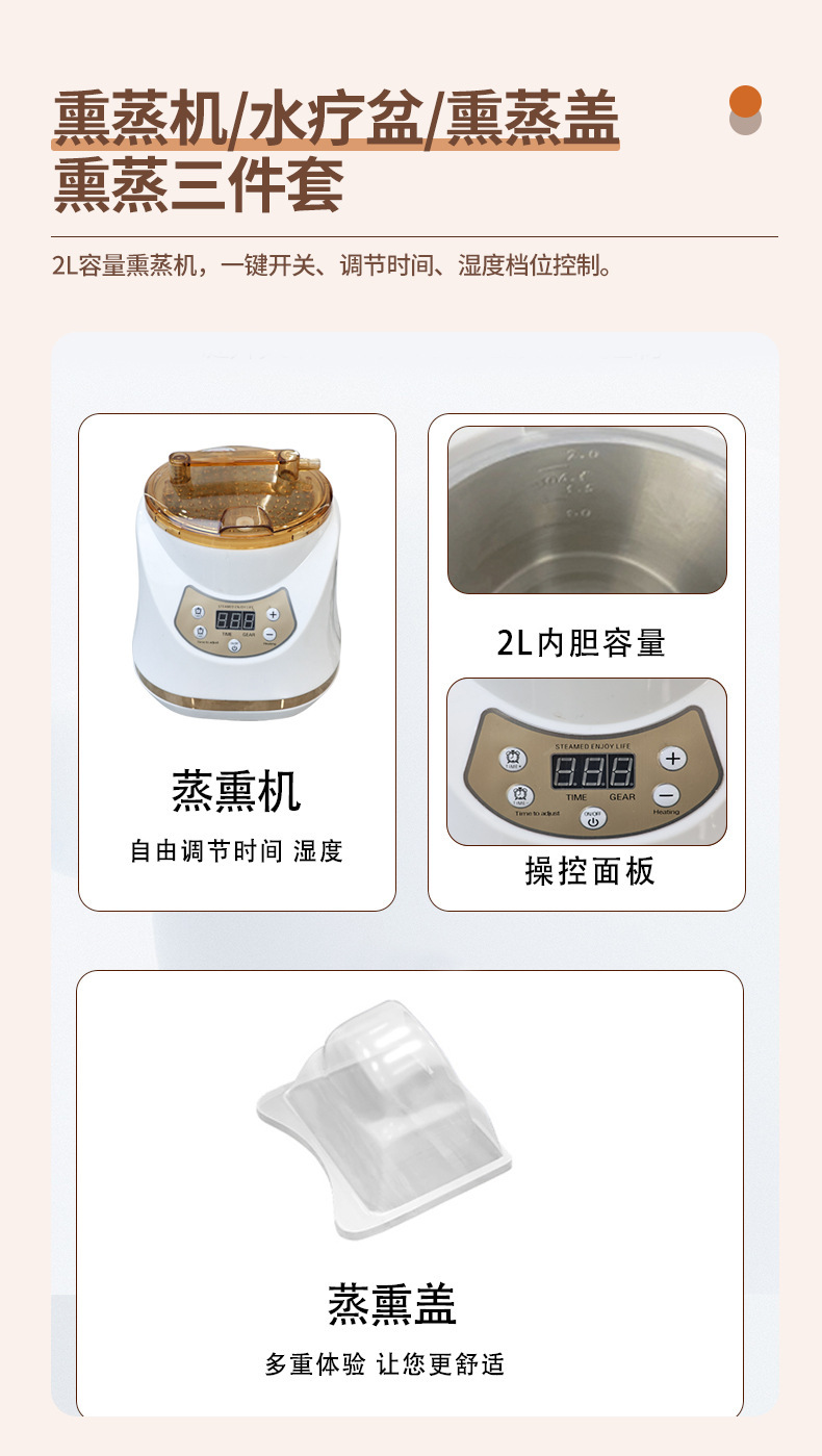 Материал Lift foot massage bed, water circulation fumigator, fumigation cover, water heater, integrated acrylic head basin, shower hot and cold faucet switch water pipe, massage cover, acrylic foot basin