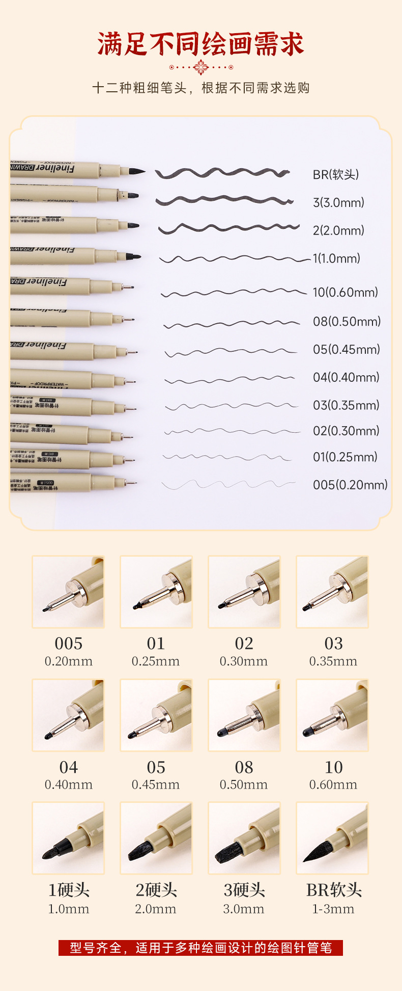 Оптовая игольчатая ручка, черная, 12 спецификаций, для анимации, рисование от руки, быстро сохнет, водонепроницаемая