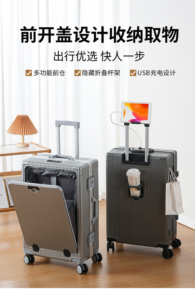 Многофункциональный чемодан с передним открыванием, алюминиевая рама, компьютерный чемодан, универсальные колеса, чемодан с кодом для путешествий для мужчин и женщин