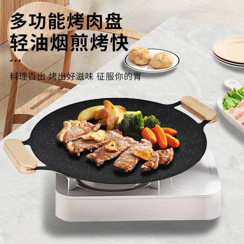 烤盘源头供应链,精铁麦饭石材质,有防烫木柄套餐可选择,尺寸大小重量不同,具体咨询客服,量大可定制尺寸,LOGO��贴牌,包装,具体咨询客服
