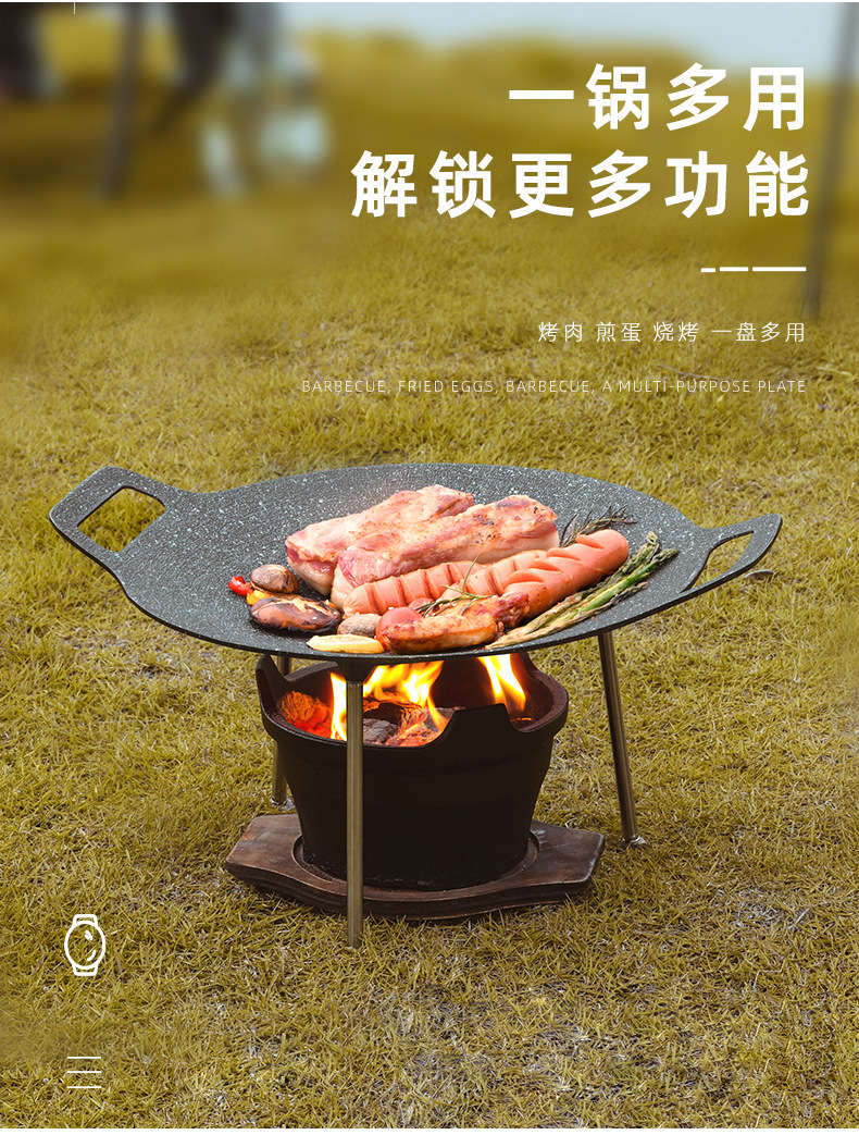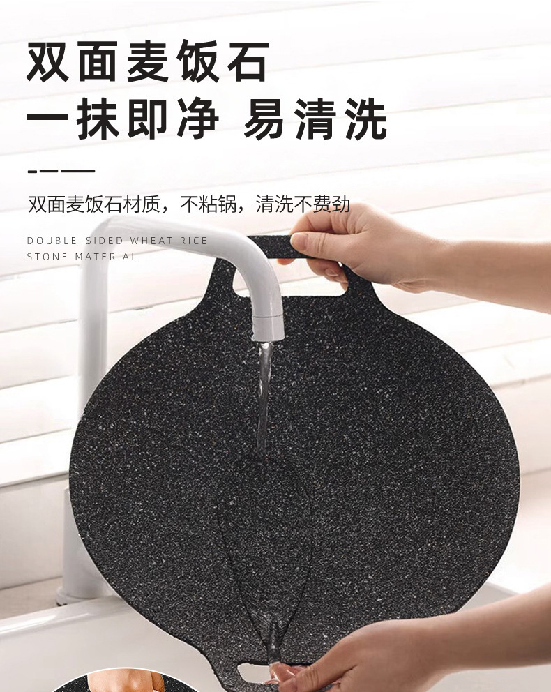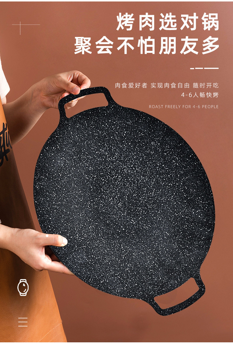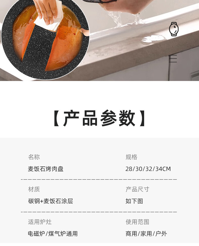 客户须知:本产品洗刷时候不能使用钢丝球等尖锐物刷盘,避免表面造成划痕。精铁麦饭石烤盘使用明火烧烤,不适用电磁炉使用。