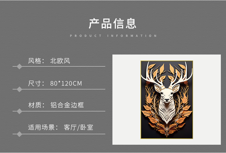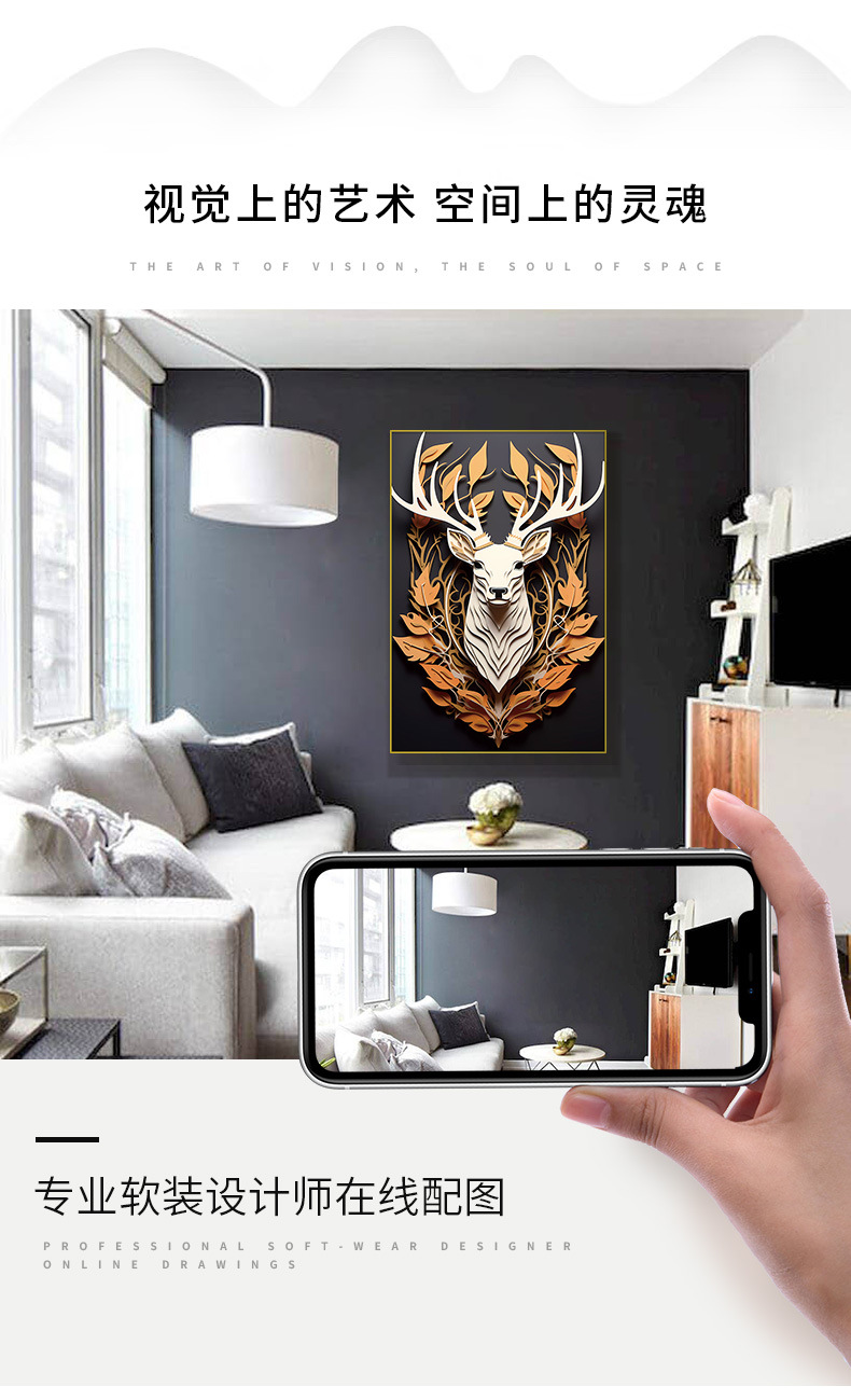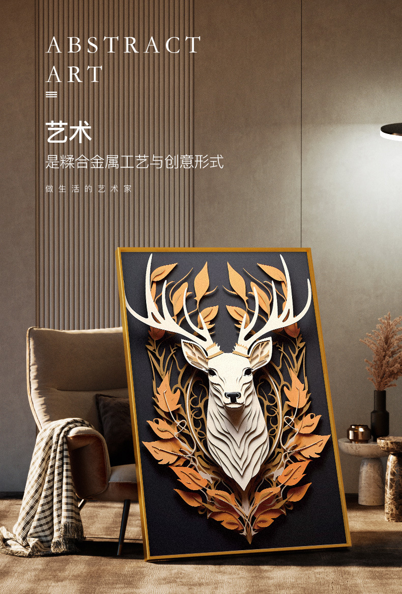Кристаллическая керамика, акриловая декоративная живопись для входной зоны, алюминиевая рама, живопись оленя 80120