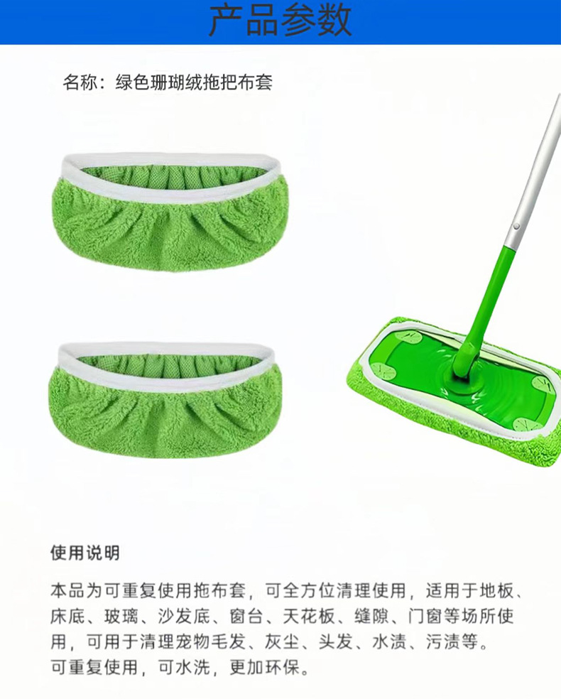 1 Suitable for swiffer mop cloth cover replacement cloth can be washed repeatedly and used flat mop accessories lazy mop