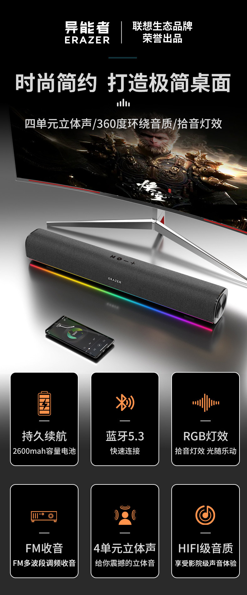 Lenovo Mutant проводная Bluetooth колонка мультимедийный компьютерный настольный длинный бар динамик с глубокими басами и стереозвуком