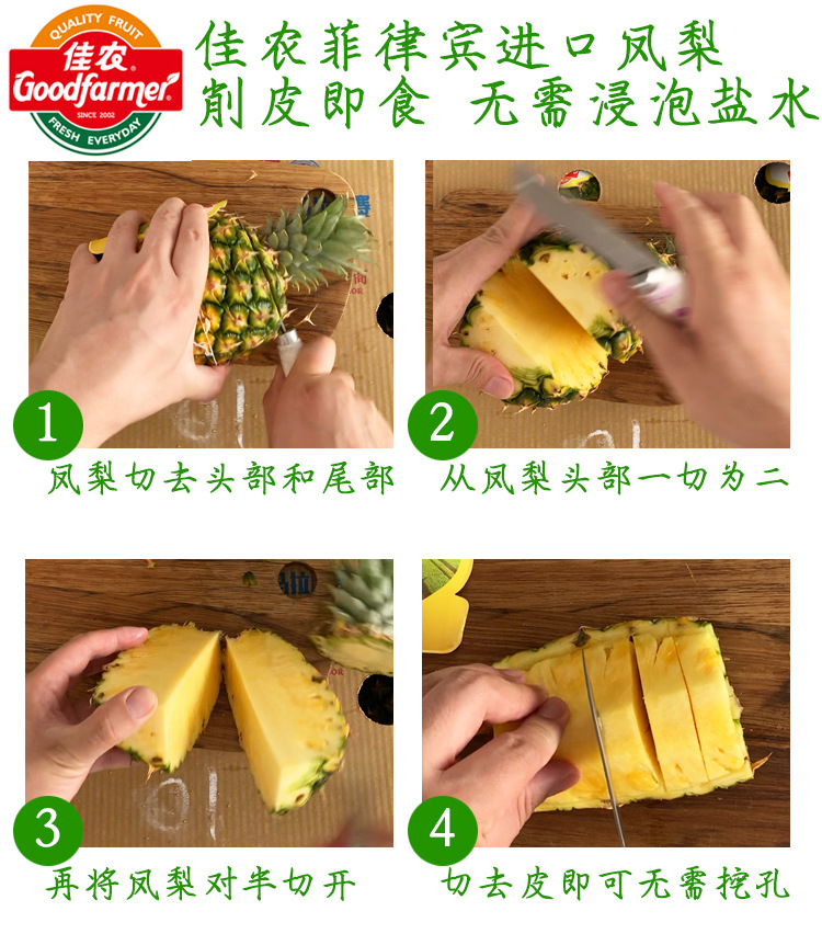 Goodfarmer Ананас Фрукт Свежий 2 Больших Фрукта Очистили и Готовы к Употреблению Импортированный Золотой Ананас из Филиппин Бесплатная Доставка