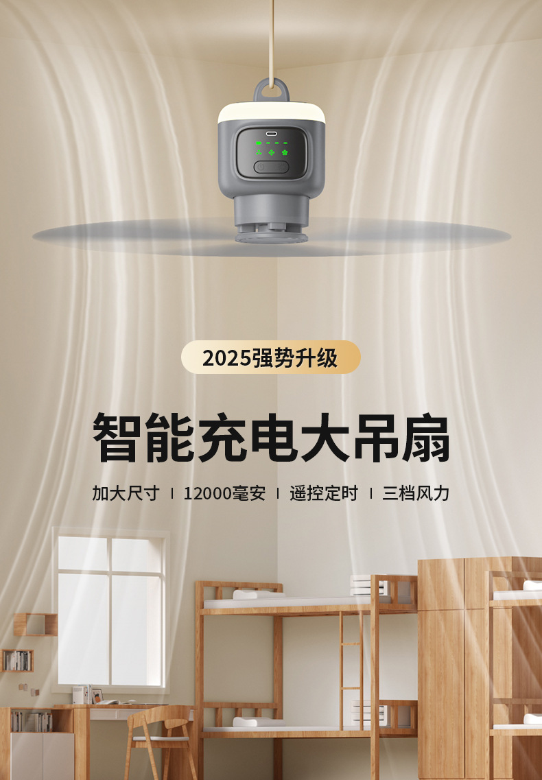 Беспроводной малый потолочный вентилятор USB, перезаряжаемый для общежития, бесшумный вентилятор с сильным ветром для кровати