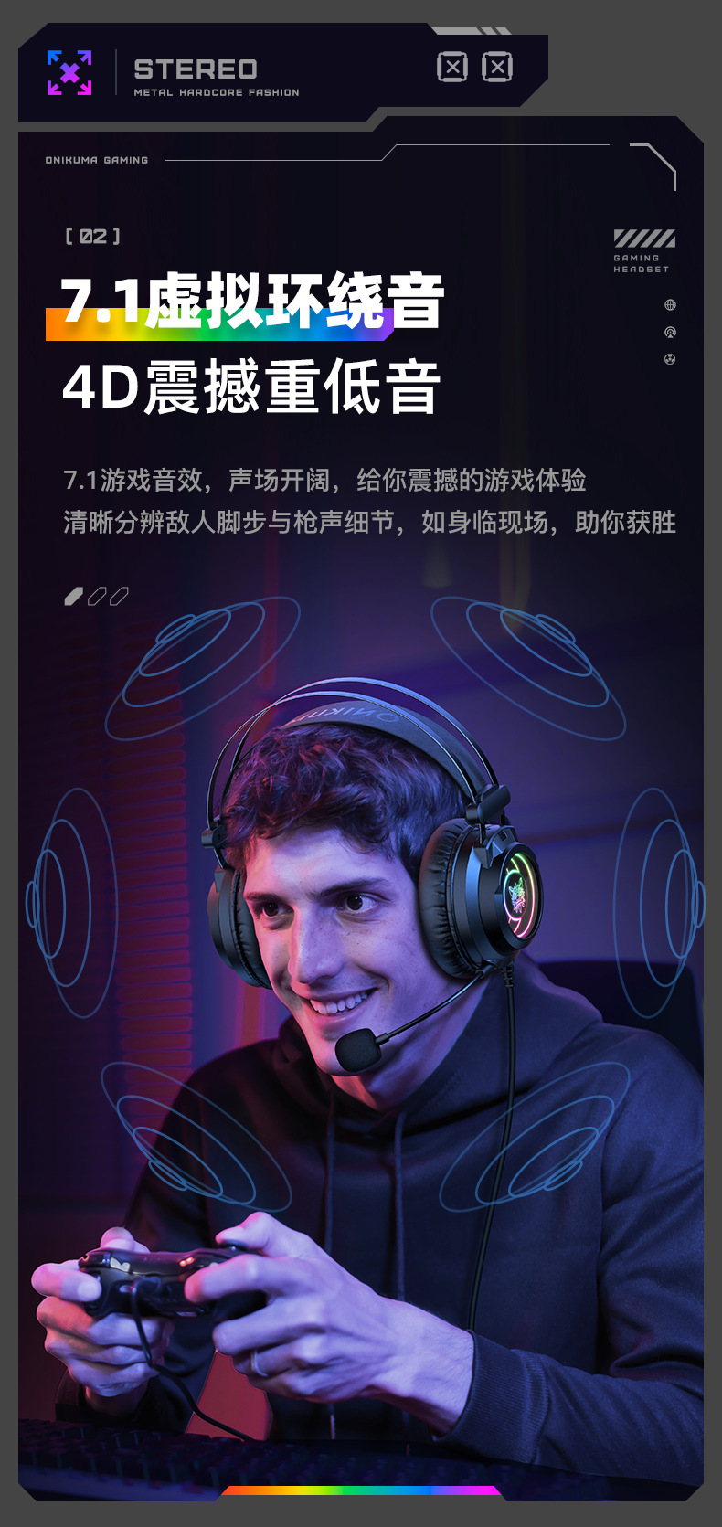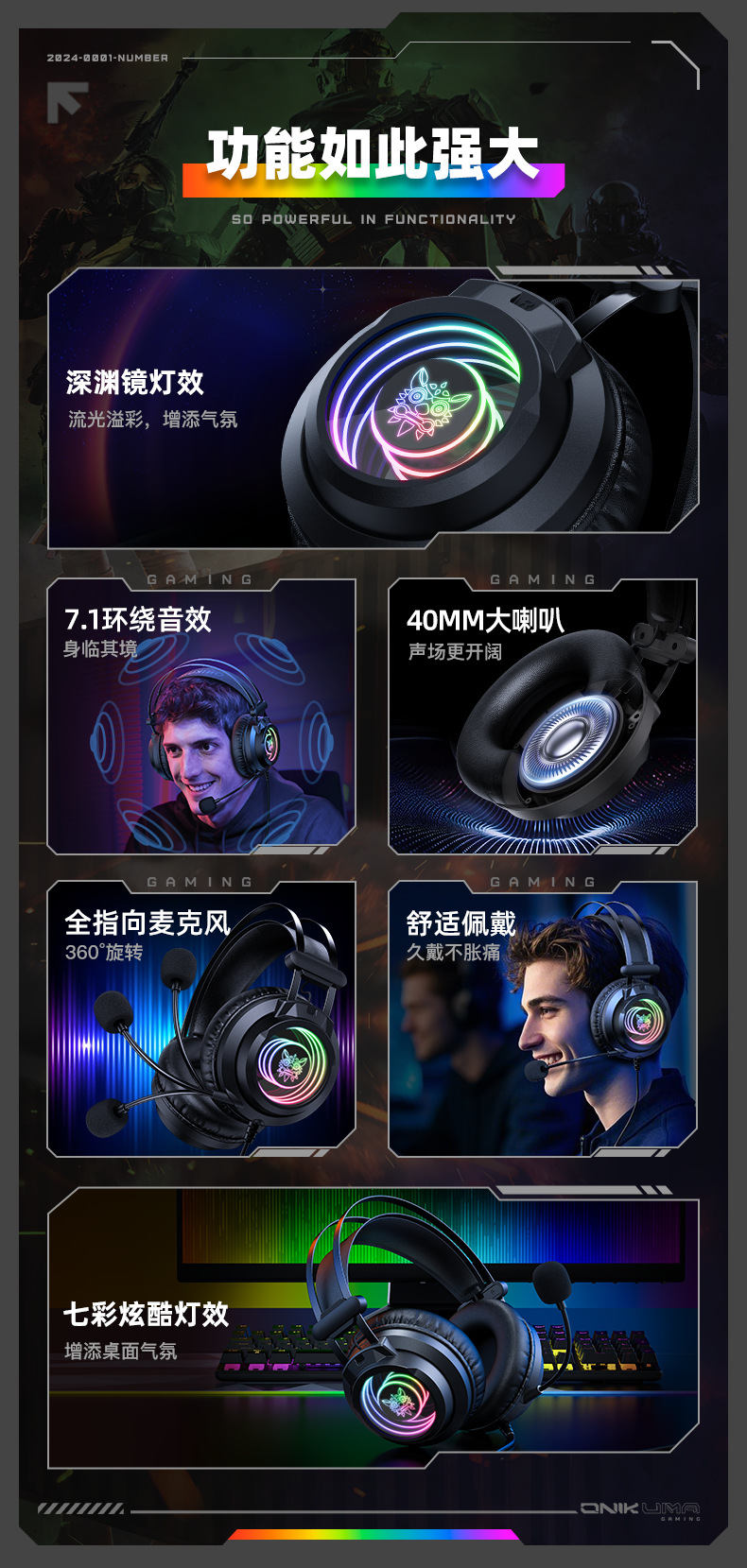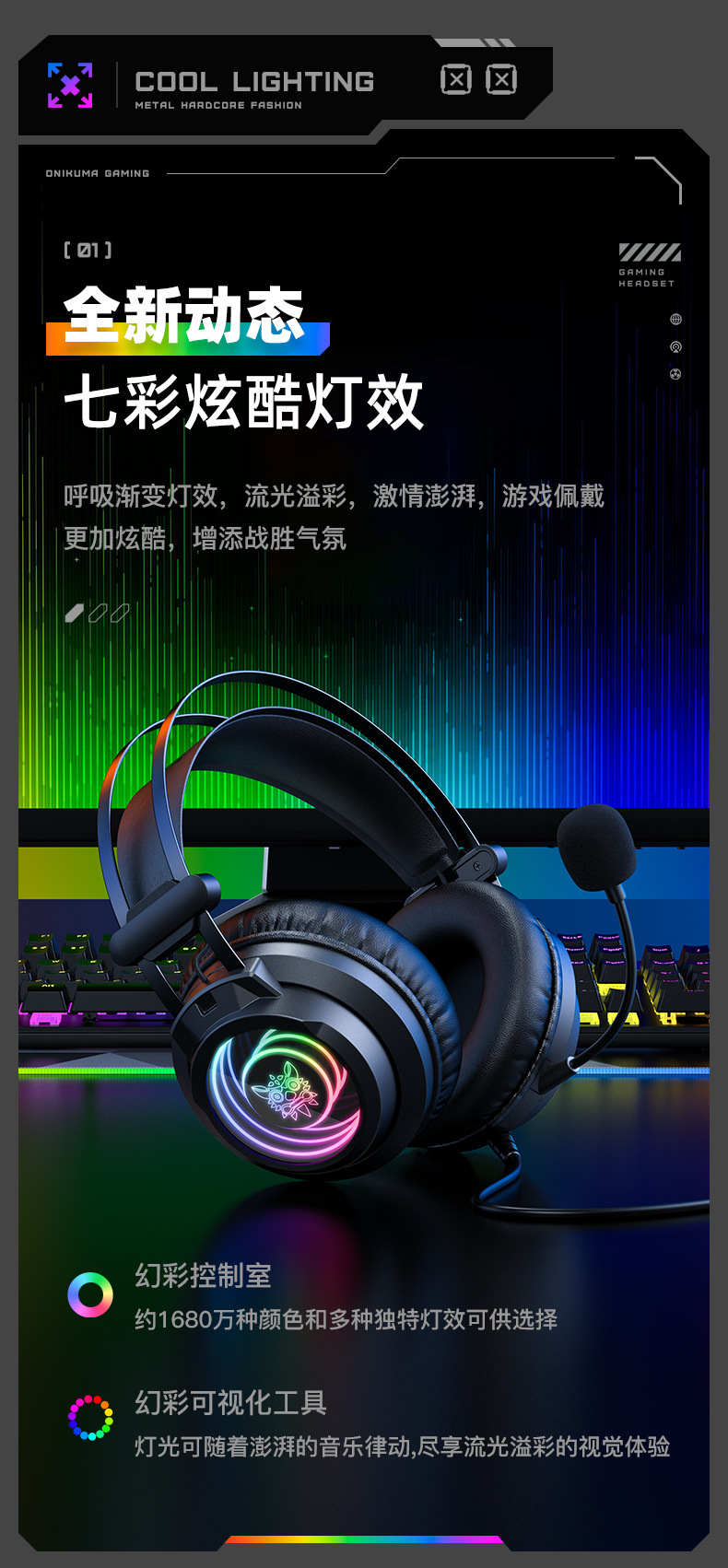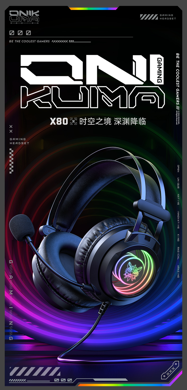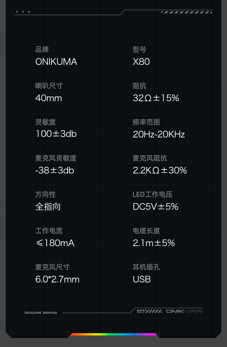 Игровая гарнитура ONIKUMA X80, проводная, 7.1 звука, для настольного компьютера