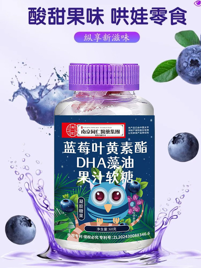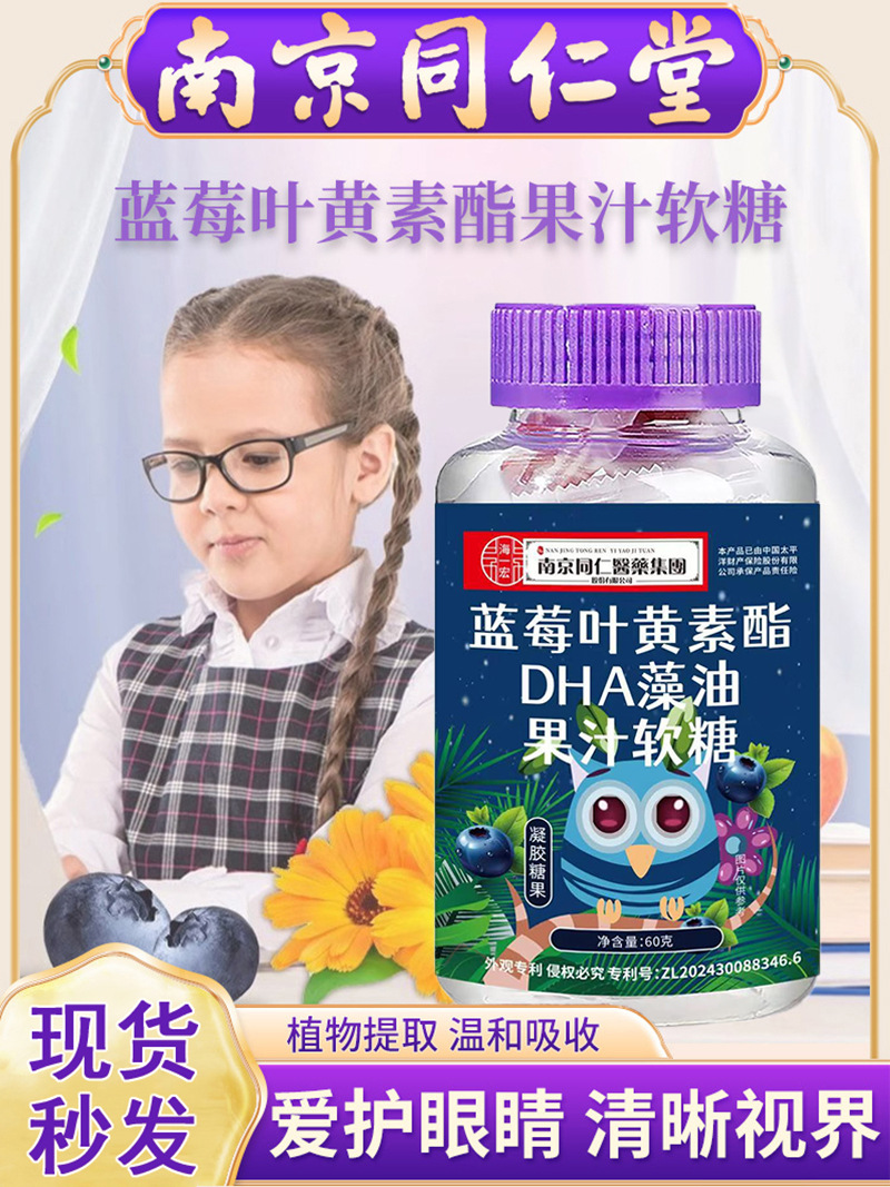 Нанкин Тунжэньтанг жевательные конфеты с лютеином из черники и DHA 60 г для детей и взрослых в наличии