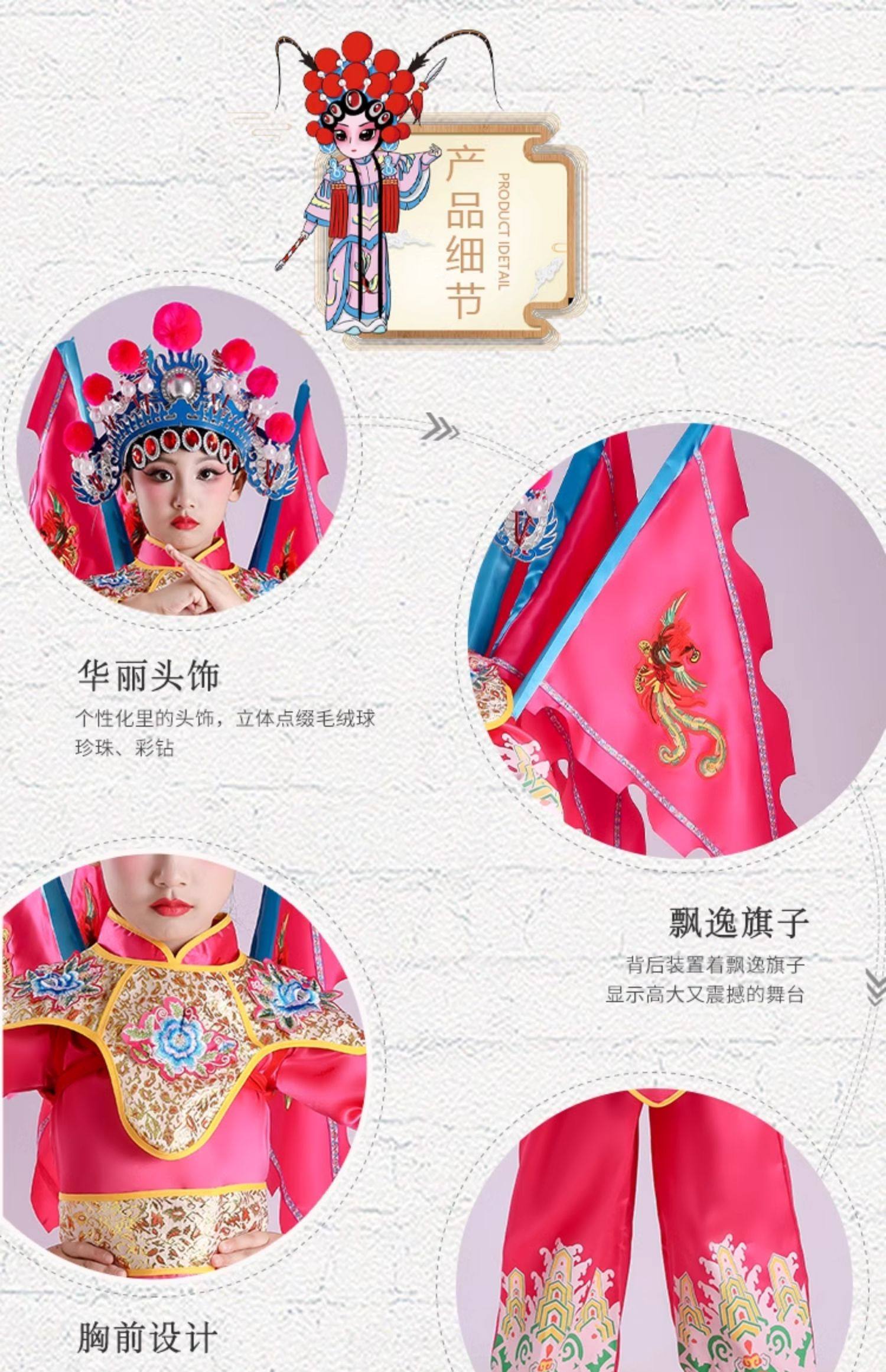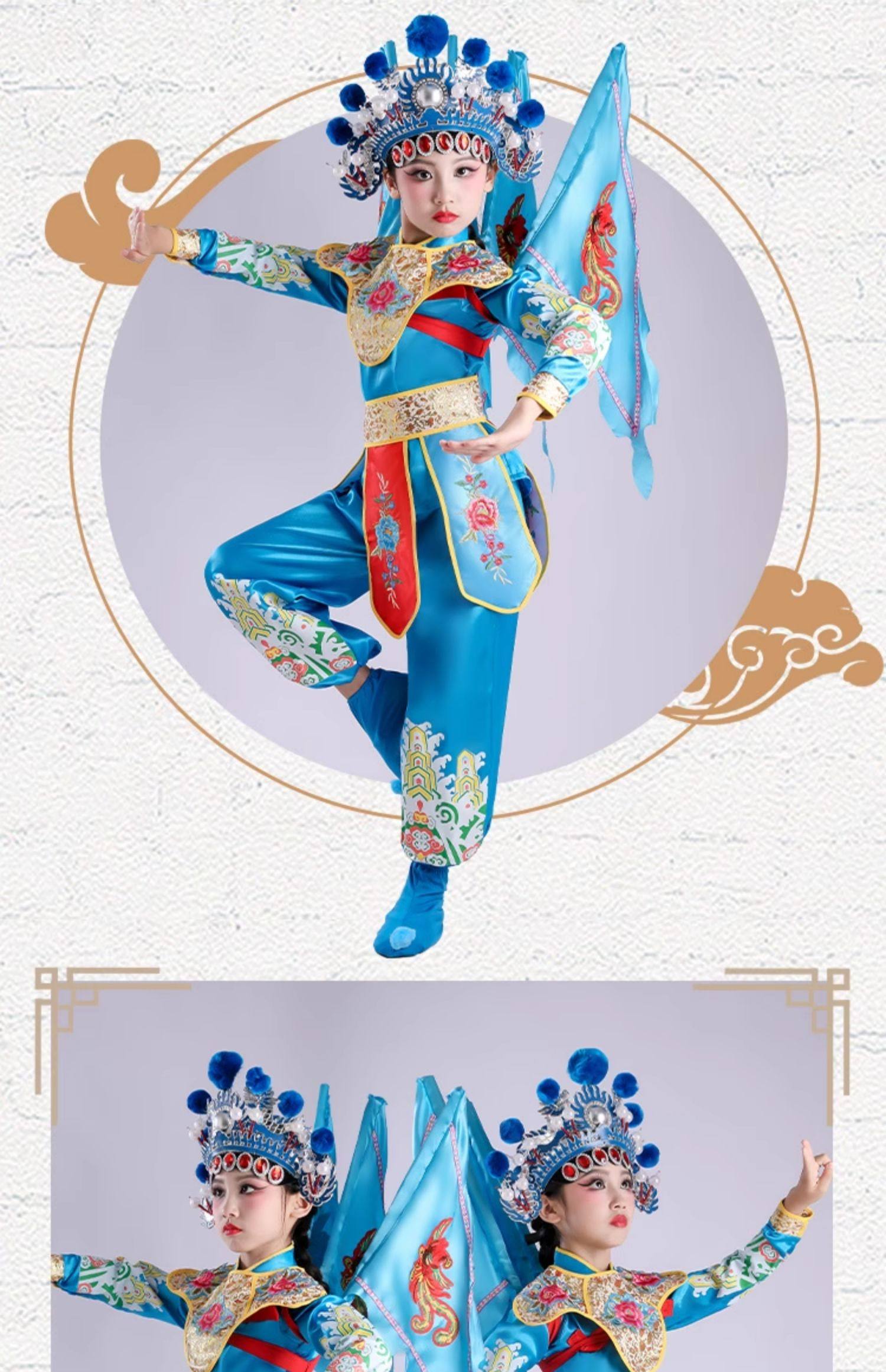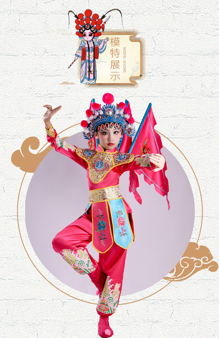 Костюм для детского пекинского оперного выступления для Му Гуиинь и Хуа Мулан