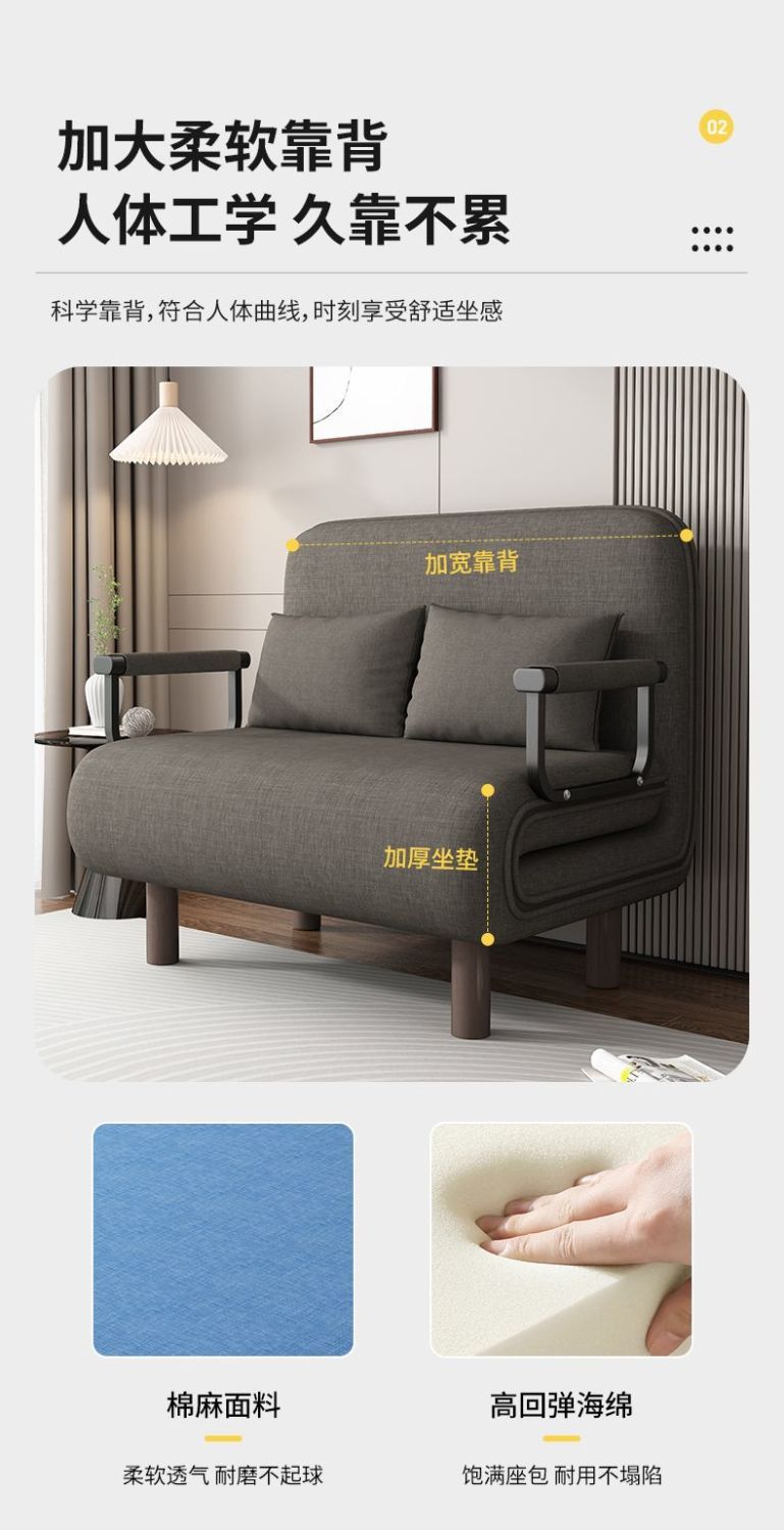 Железный диван Двухцелевой раскладной диван-кровать для маленькой квартиры Гостиная Многофункциональный Балкон Учебный Одноместный Двойной выдвижной диван