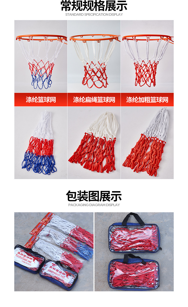 Уличная баскетбольная сетка, красно-бело-синяя, прочная