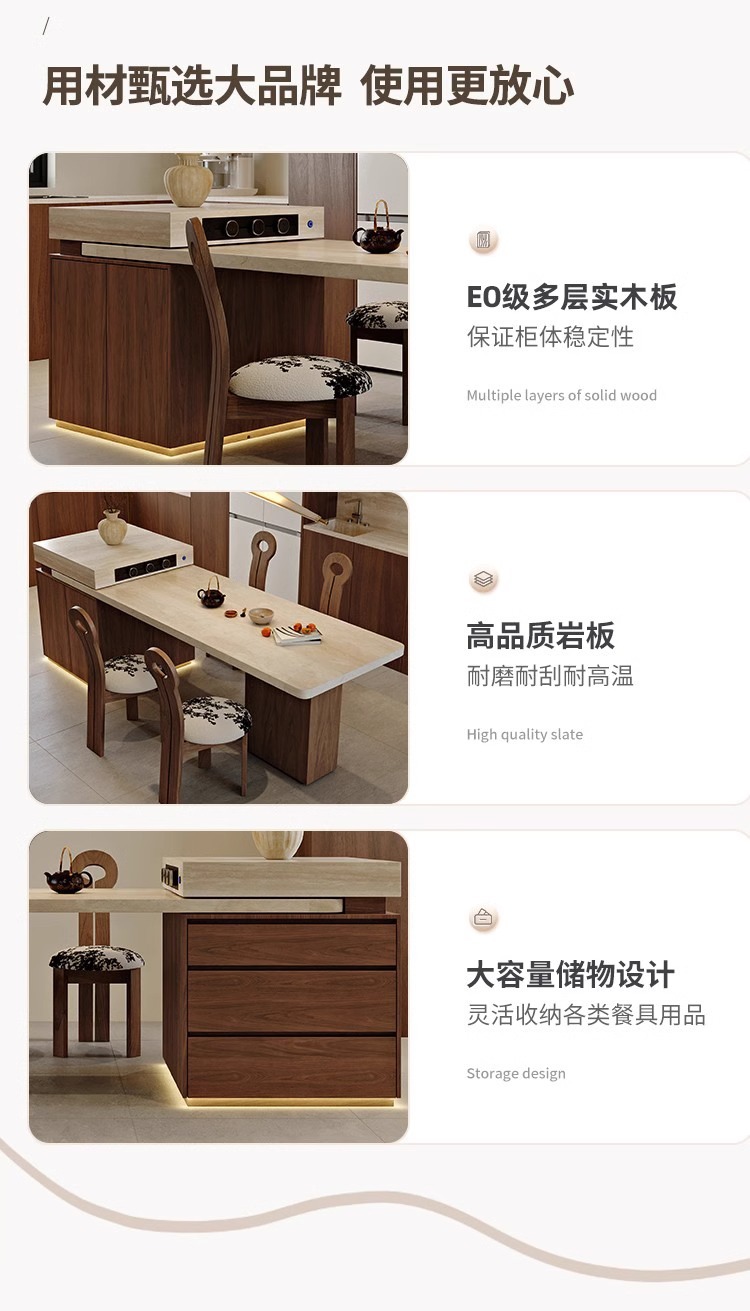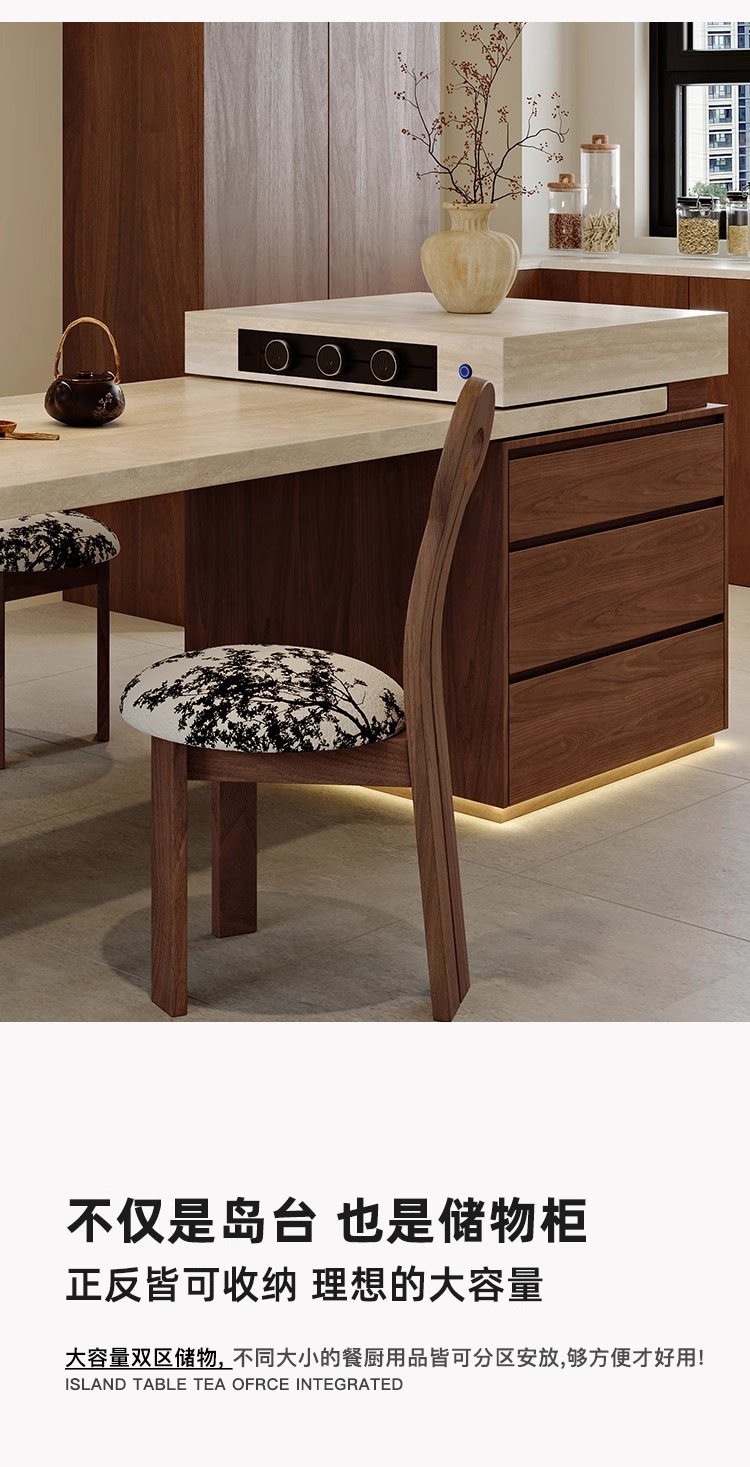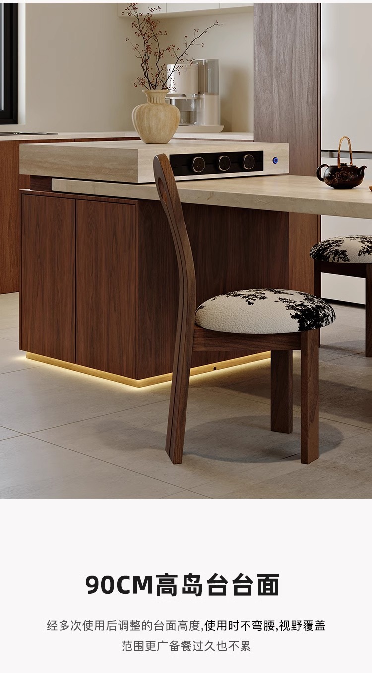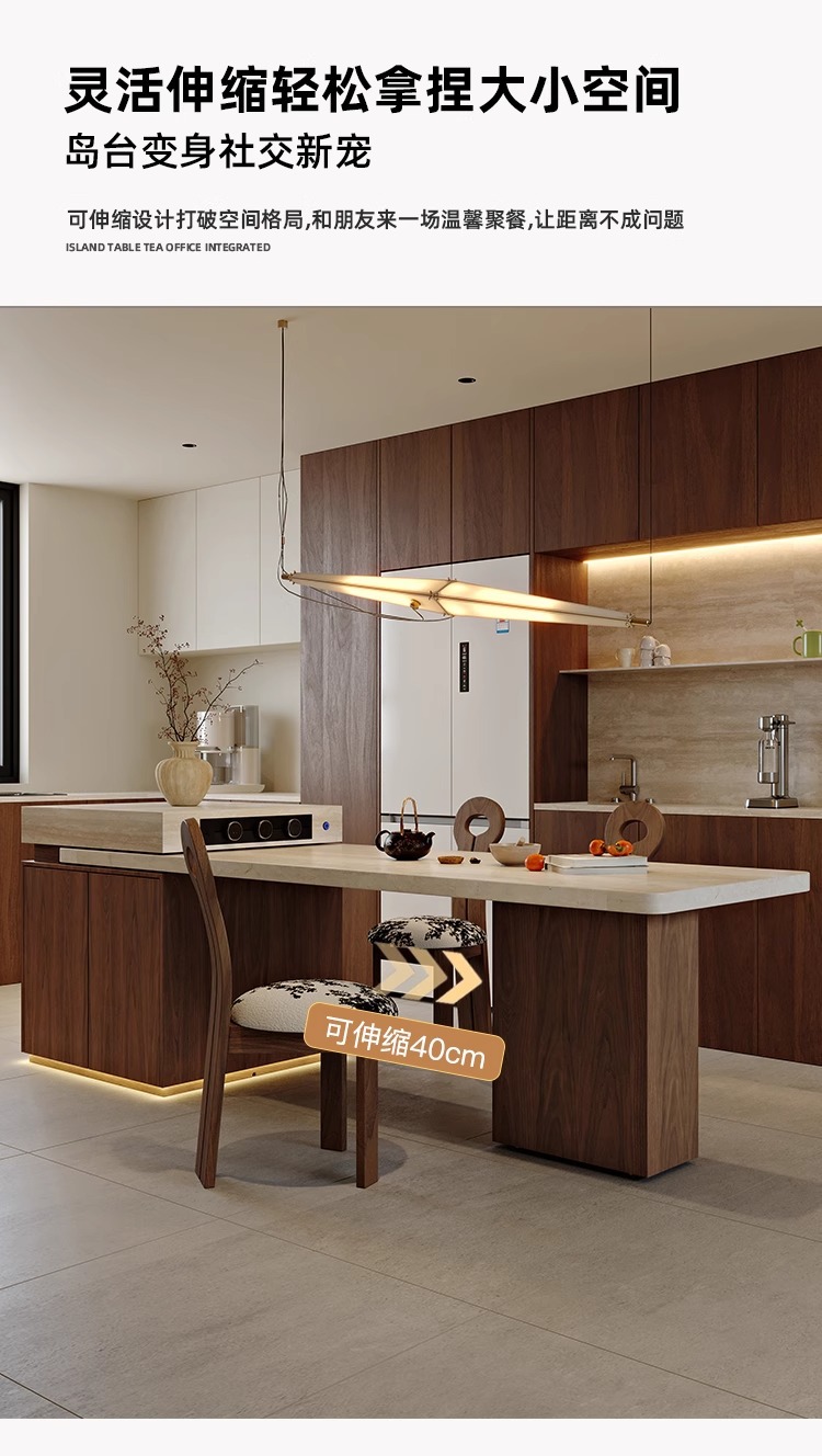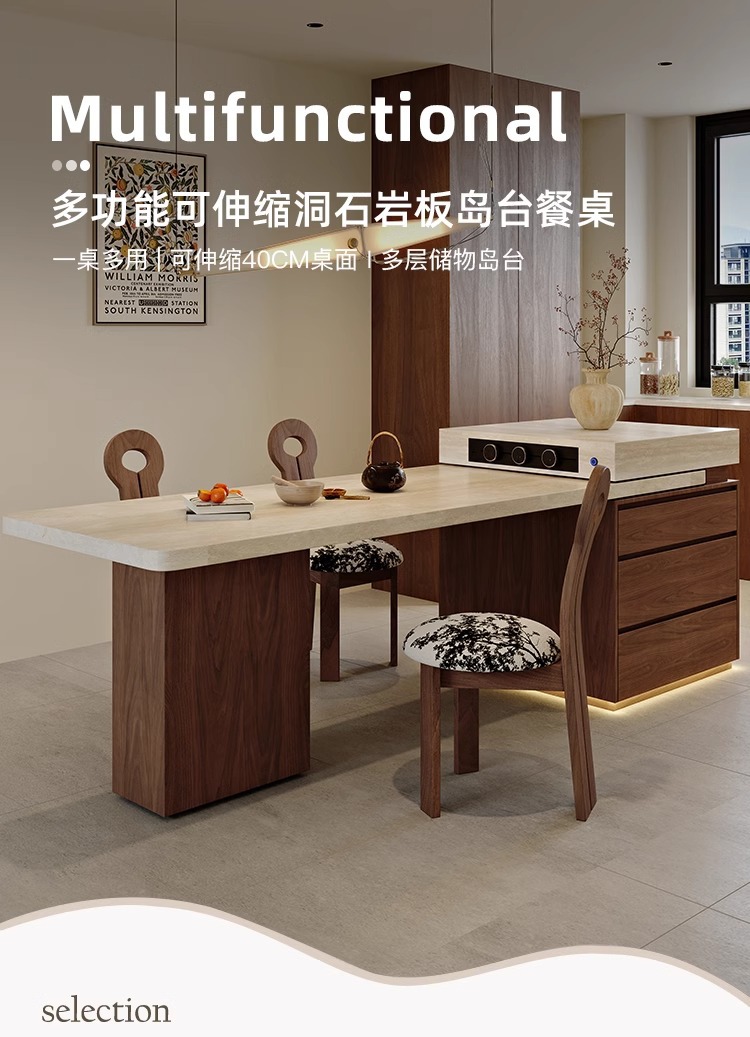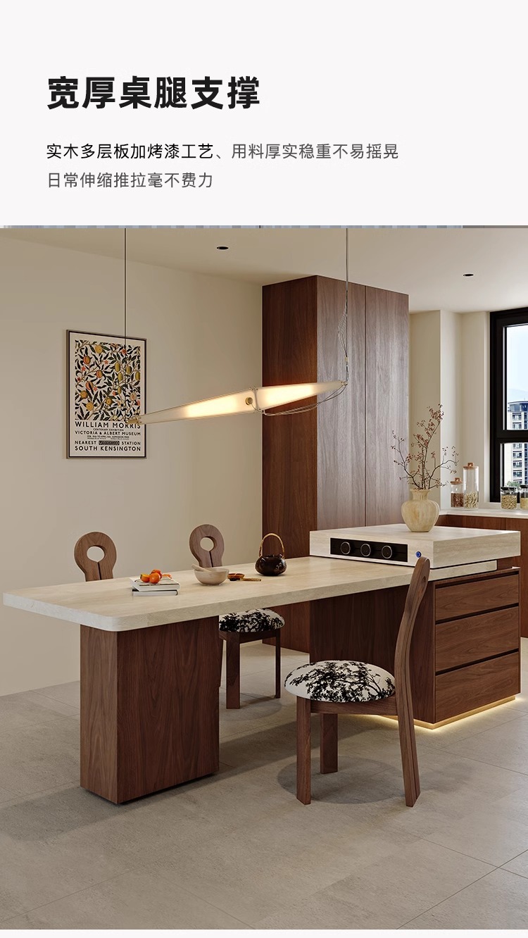 Обеденный стол в французском стиле, винтажный травертин, многофункциональный раскладной островной стол с индукционной плитой для дома и гостиной