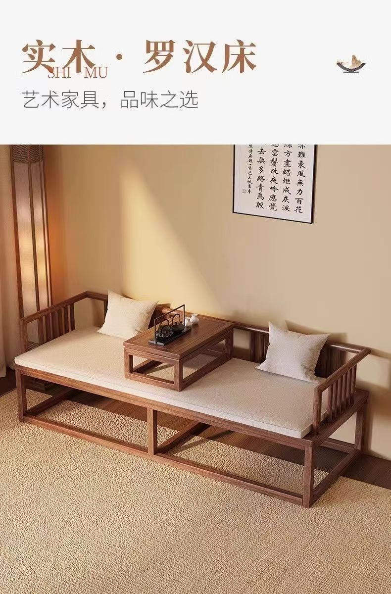Новый китайский стиль, полностью массивная лохан-кровать, диван-кровать для маленькой квартиры, двухцелевой отдых