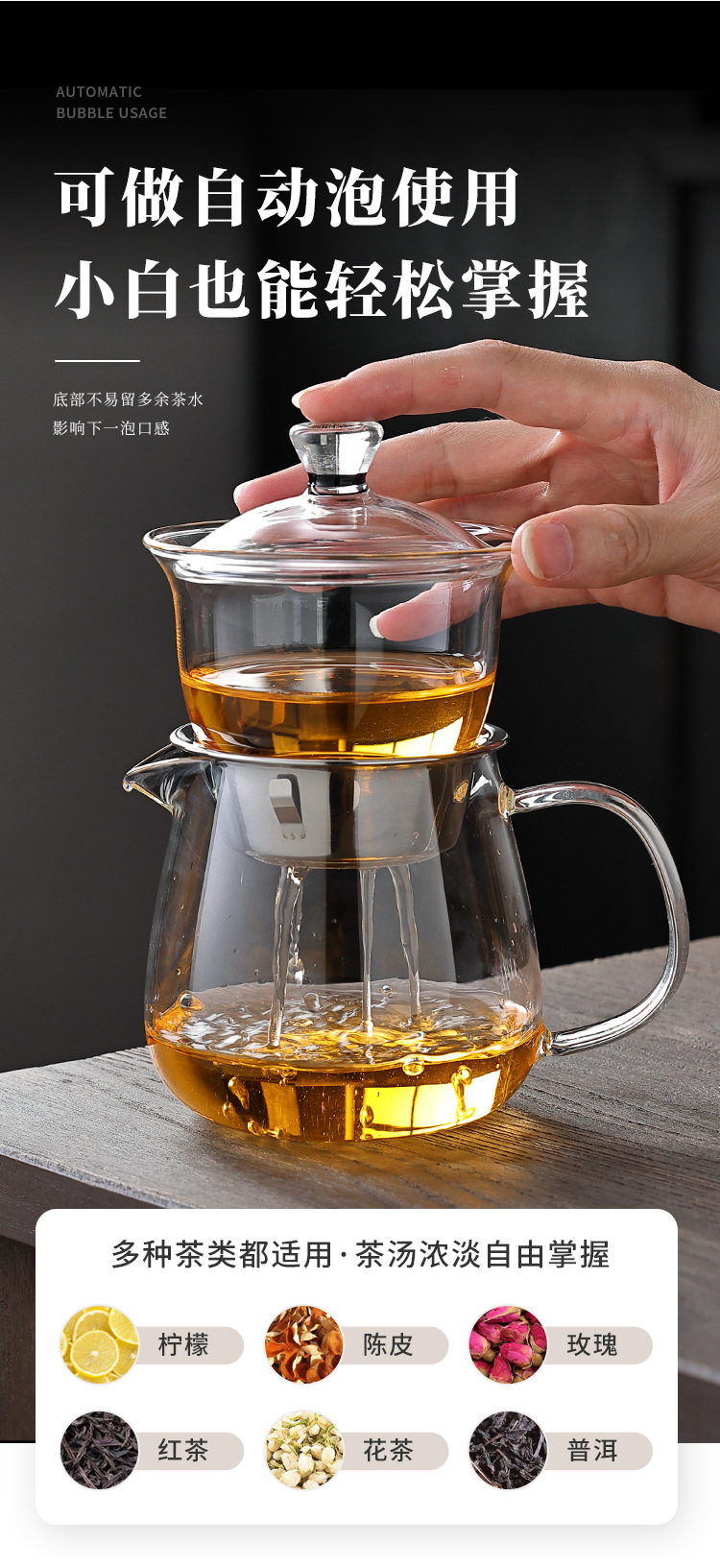 Гаджет для заваривания чая для ленивых, полностью автоматический стеклянный чайный набор для дома