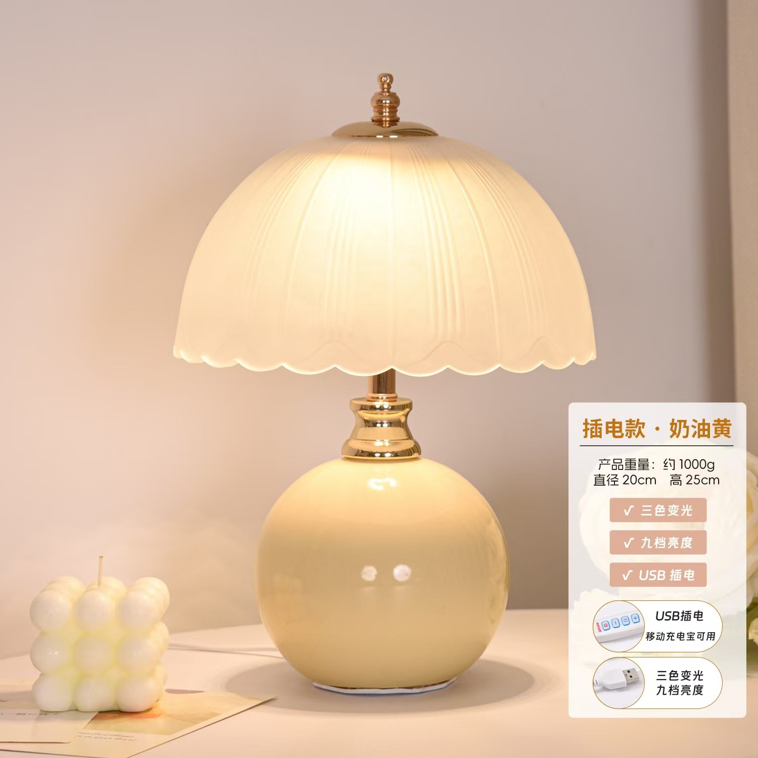 Кремовая стильная ретро креативная роскошная настольная лампа, спальня 2025, прикроватная лампа, главная спальня, грибной атмосферный ночник
