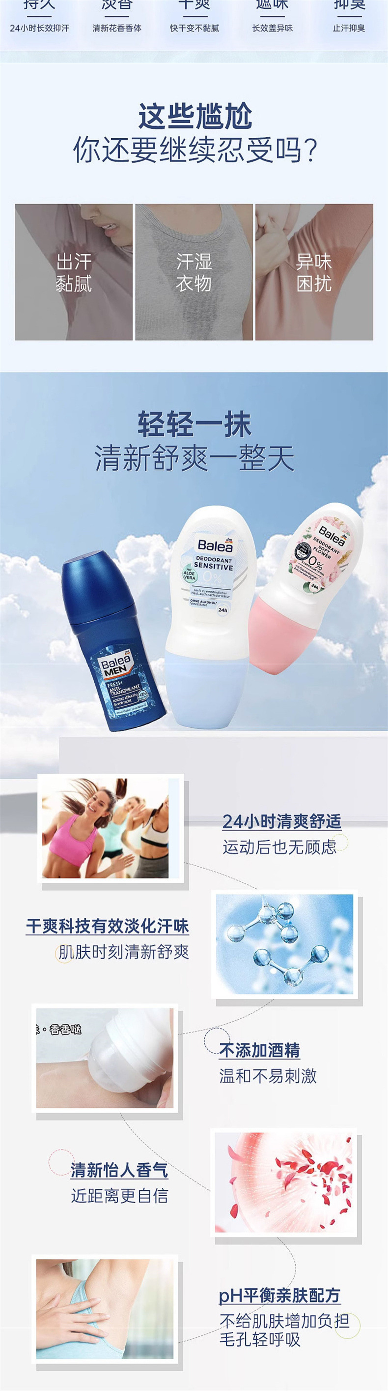 Роликовый дезодорант Balea, чувствительный, свежий и сухой, 50 мл