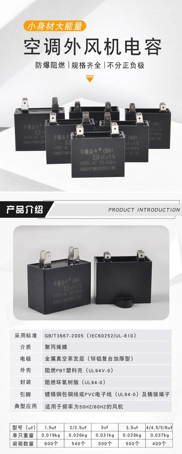 Конденсатор вентилятора наружного блока кондиционера Cbb61 1.5/2/2.5/3/4/5/6Uf450V, аксессуары для кондиционера