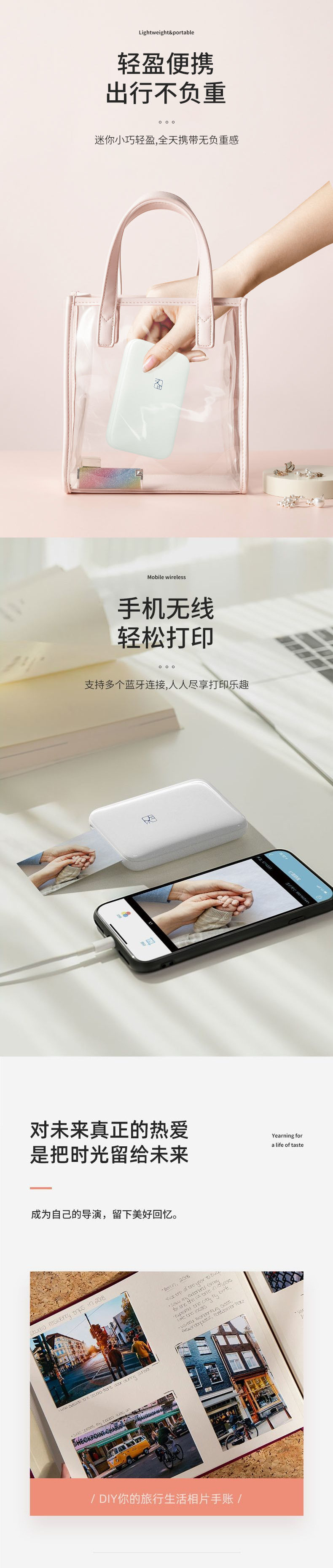 Мини-принтер фотографий для студентов, портативный, цветная печать, для мобильных телефонов