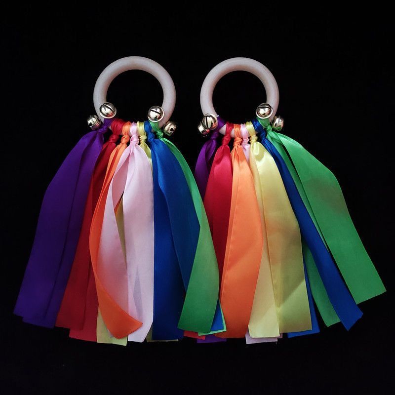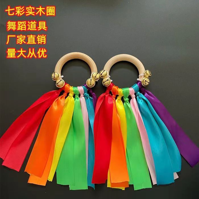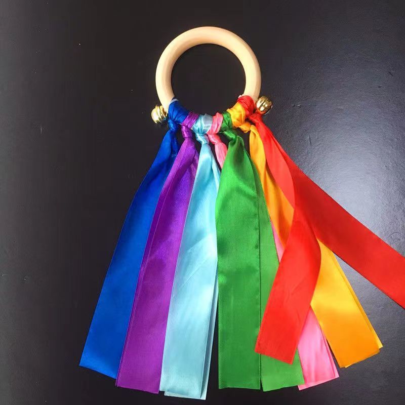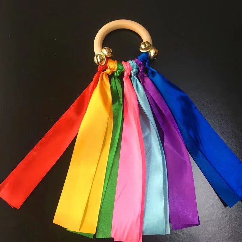 Радужное кольцо с деревянным колокольчиком, утренние зарядки в детском саду, реквизиты для детских программ