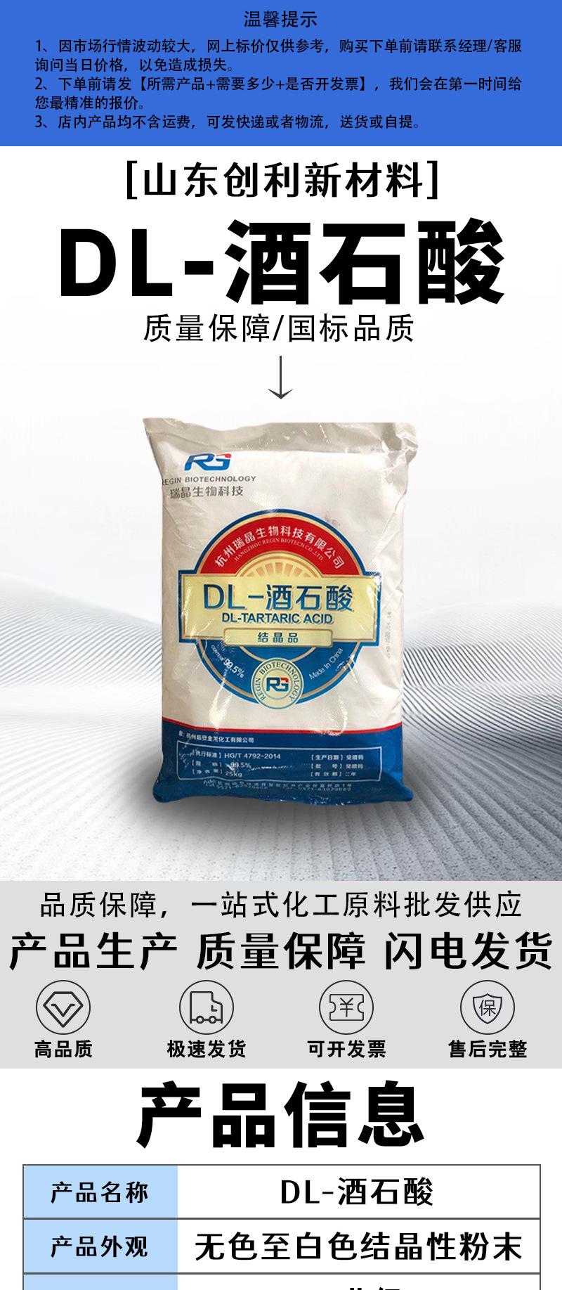 Дл-каменная кислота Регулятор кислотности 99.5% содержание 25 кг/мешок тербоновая кислота