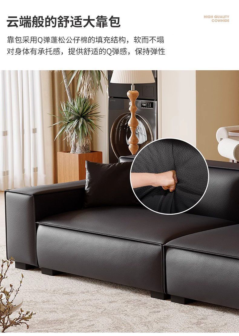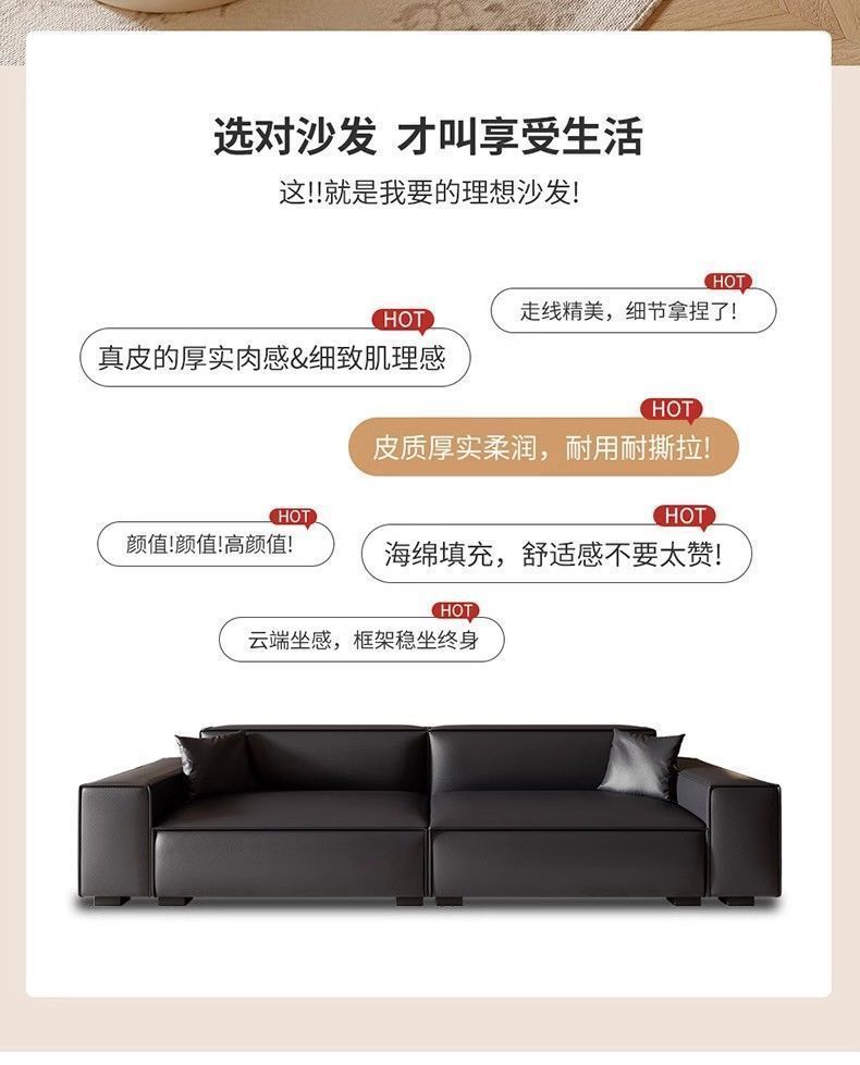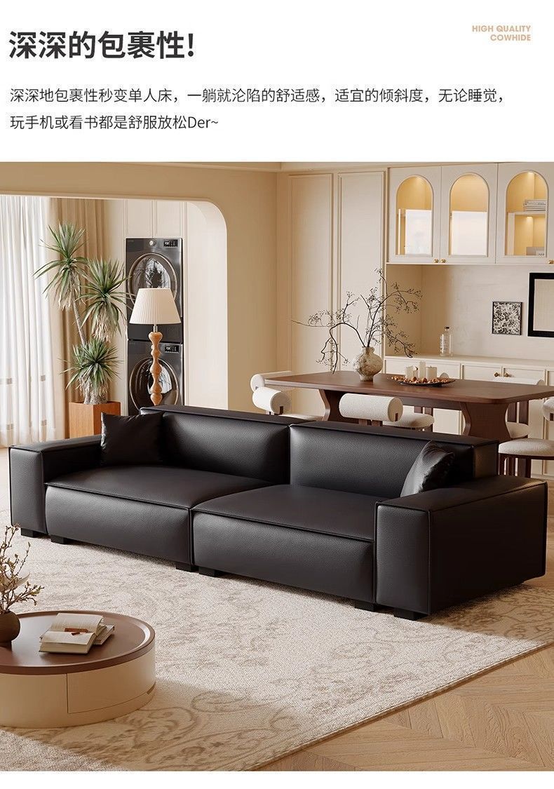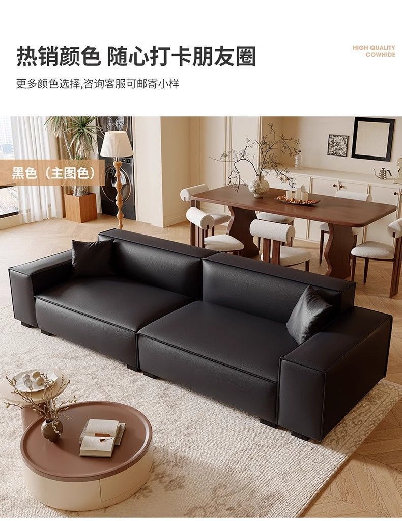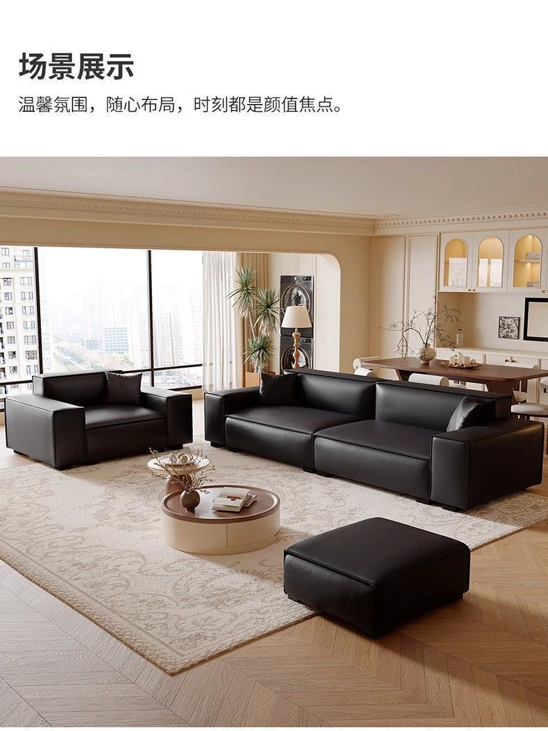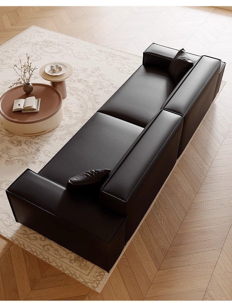 Итальянский минималистичный диван, для маленькой квартиры, из кожи, большой черный диван