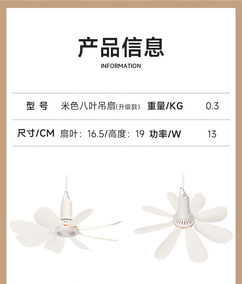 ![]() | Beige eight-blade ceiling fan (upgraded model) + remote control timing line | ¥25.0 / ≈ 304 ₽ | 99765 | 5793451985510 |