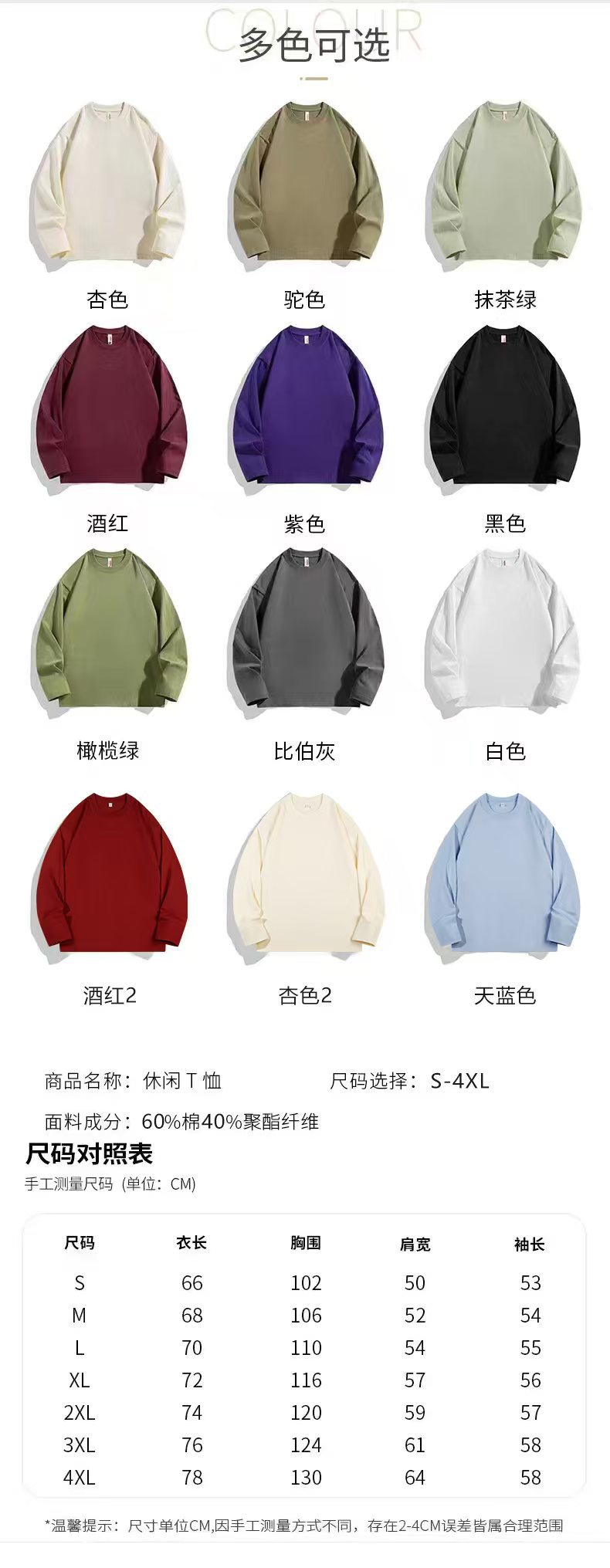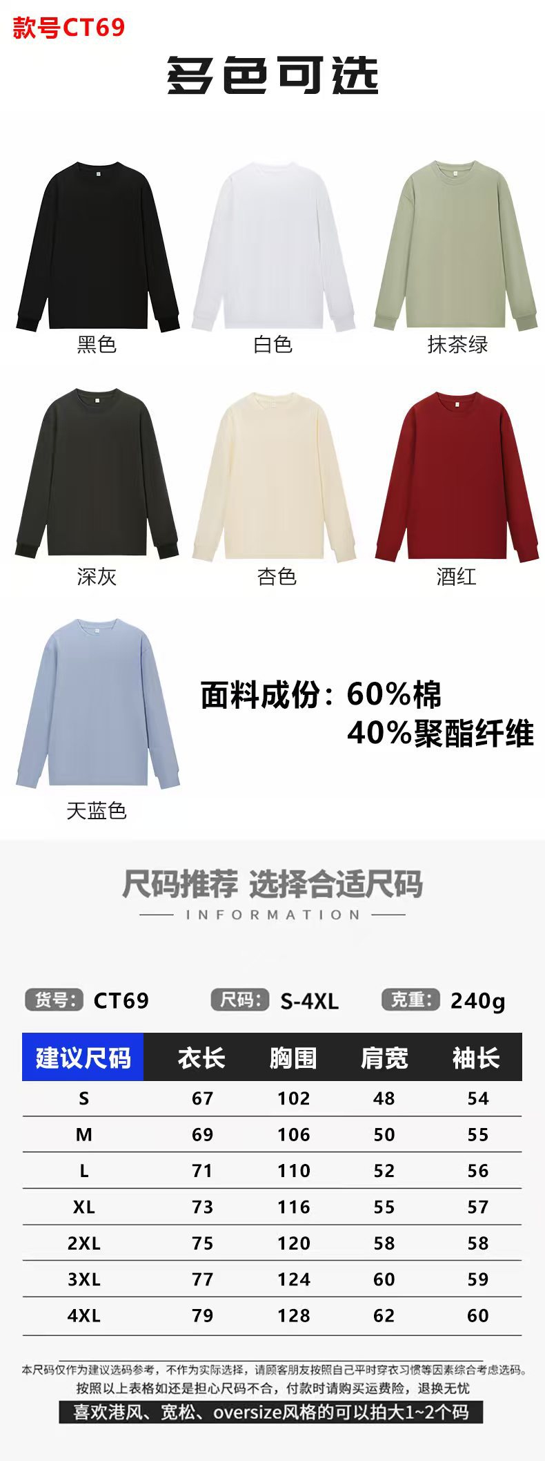 ![]() | 300g cotton splicing long sleeve white | S | ¥22.0 / ≈ 268 ₽ | 0 | 5924960176774 | |