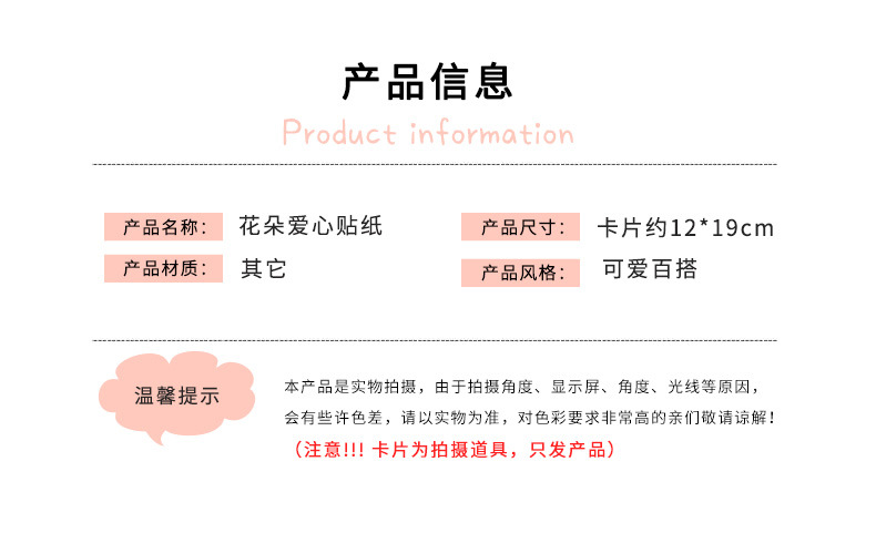 ![]() | No specifications | 5#Pink love flower sticker | ¥1.08 / ≈ 13 ₽ | 160 | 5959605758483 | |