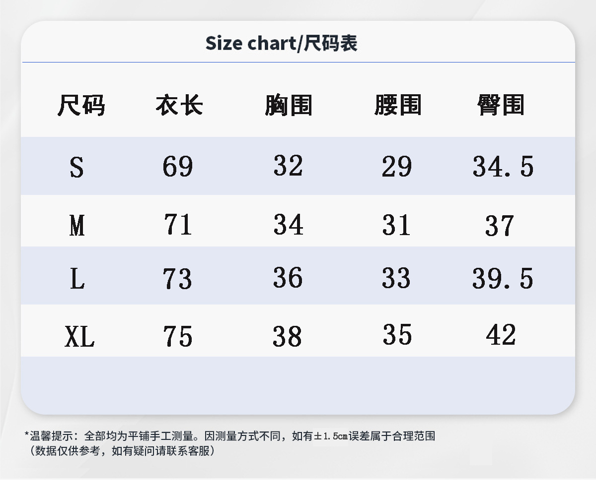 | 臀围 | 34.5 | 37 | 39.5 | 42 |