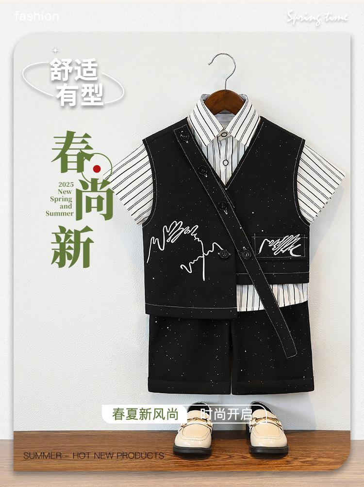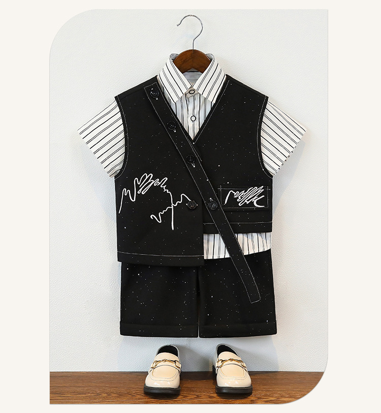 ![]() | Black trousers 4-piece set (pure cotton short sleeves + vest + trousers + tie) | 140cm, recommended weight 27.5-33.5kg | ¥71.39 / ≈ 868 ₽ | 142 | 5888746333133 | |