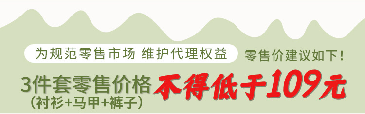 ![]() | Brown trousers 4-piece set (pure cotton long sleeves + vest + trousers + tie) | 110cm, recommended weight 15-19kg | ¥73.5 / ≈ 894 ₽ | 362 | 5888746333118 | |