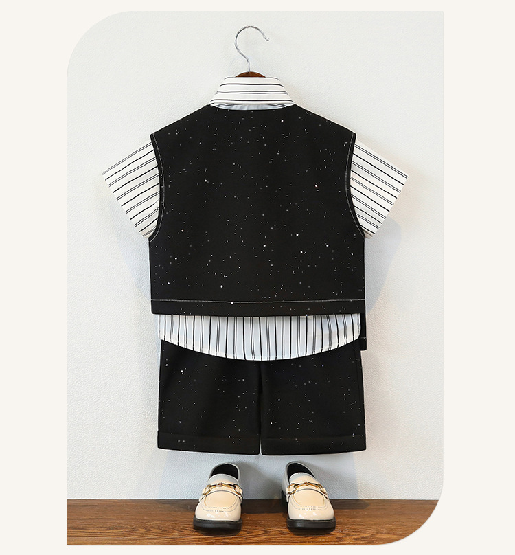 ![]() | Black trousers 4-piece set (pure cotton short sleeves + vest + trousers + tie) | 130cm, recommended weight 22.5-27kg | ¥71.39 / ≈ 868 ₽ | 178 | 5888746333135 | |