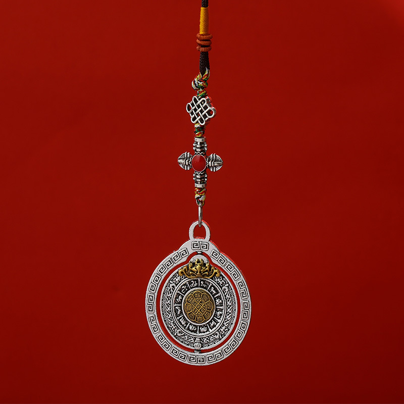 2025 Тибетский Стиль Новый Антикварный Вращающийся Девяти-Квадратный Багуа Двенадцать Зодиаков Ожерелье Автомобильная Висюлька Прямая Поставка Фабрики