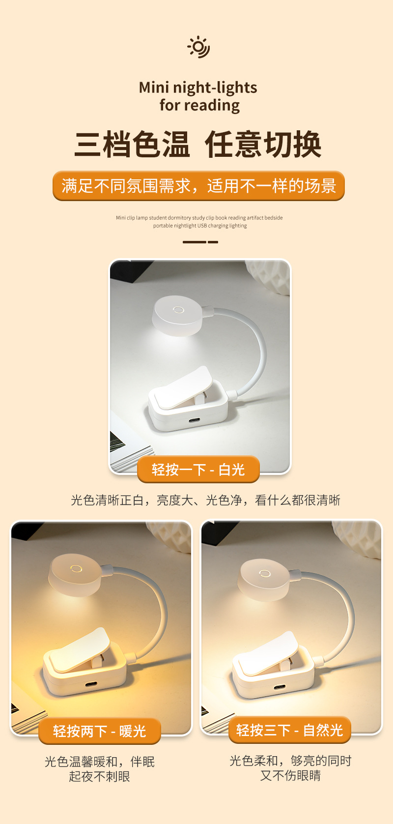 ![]() | Rechargeable book clip lamp (300 mah) | ¥6.8 / ≈ 83 ₽ | 9962938 | 5792924028155 | |