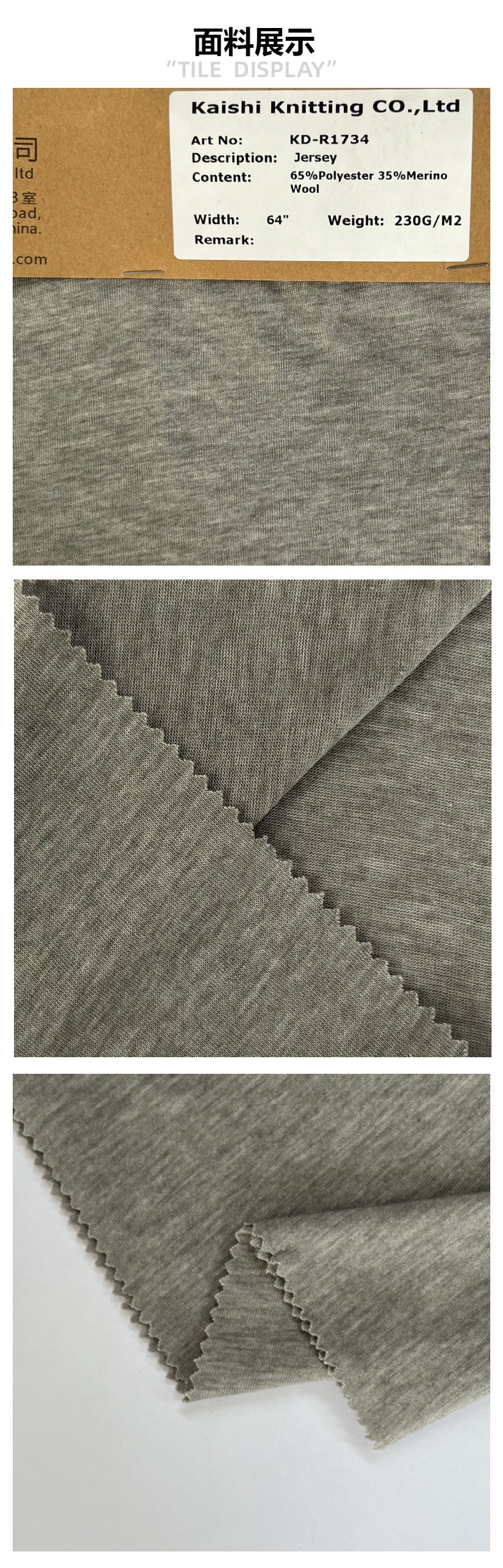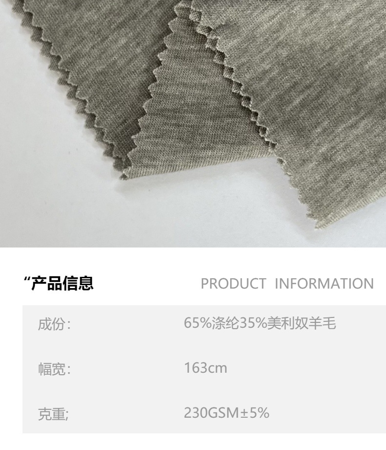 Трикотажная ткань 65% полиэстер, 35% мериносовая шерсть для базовых слоев мужских и женских футболок и свитеров, теплая и комфортная
