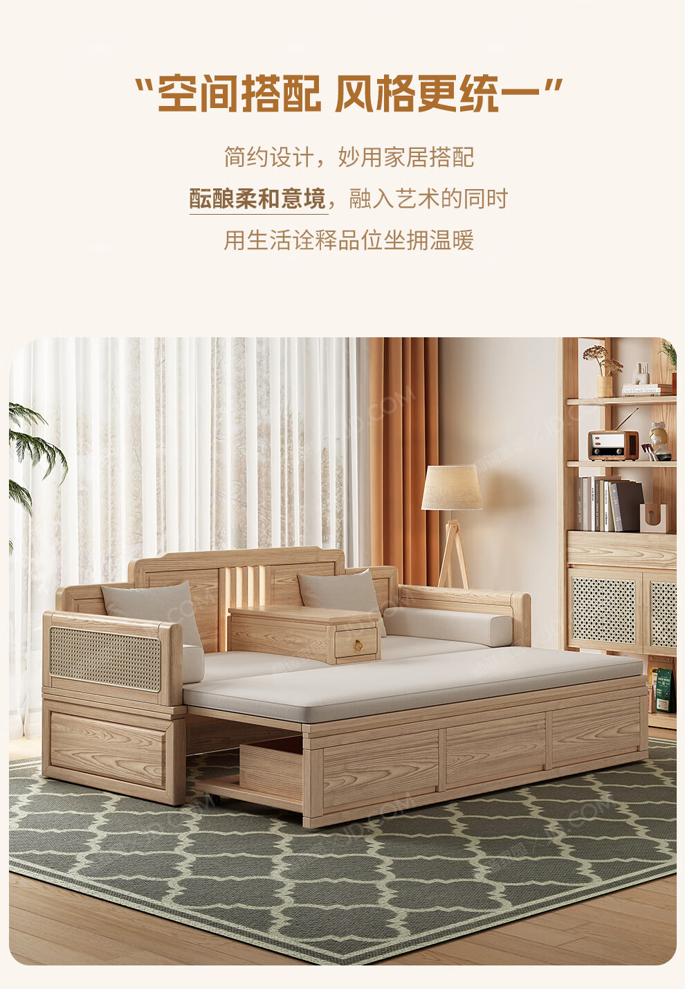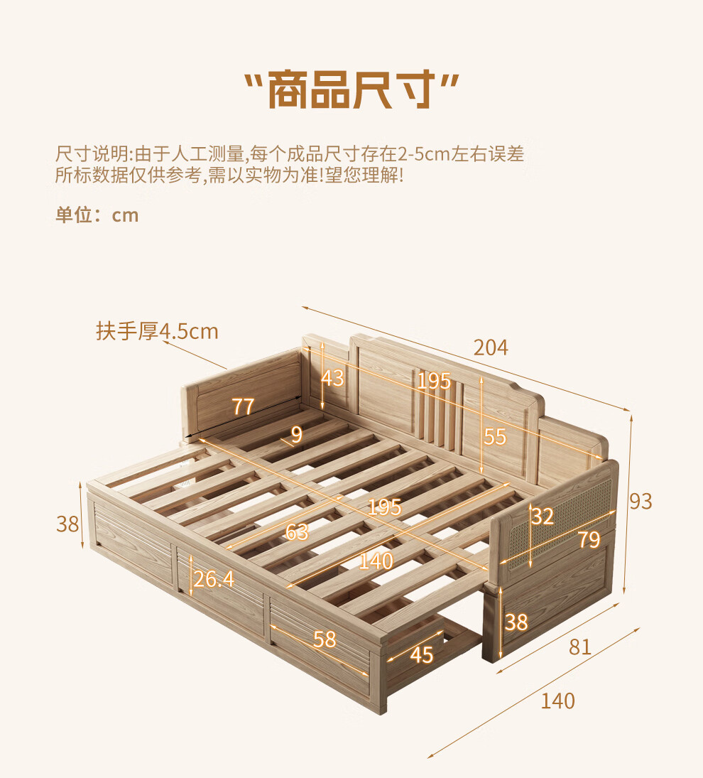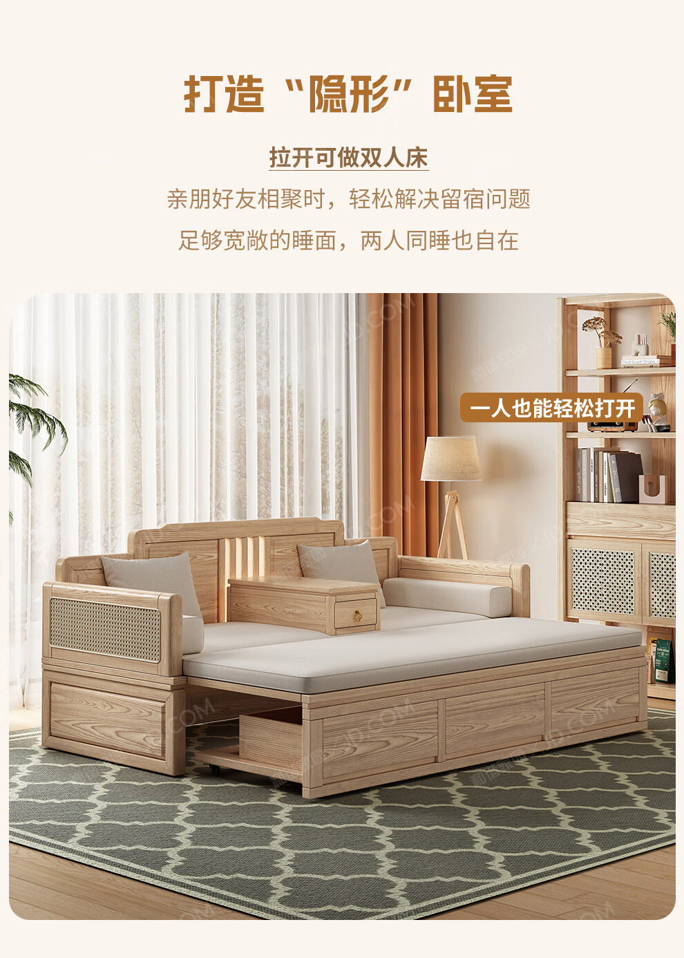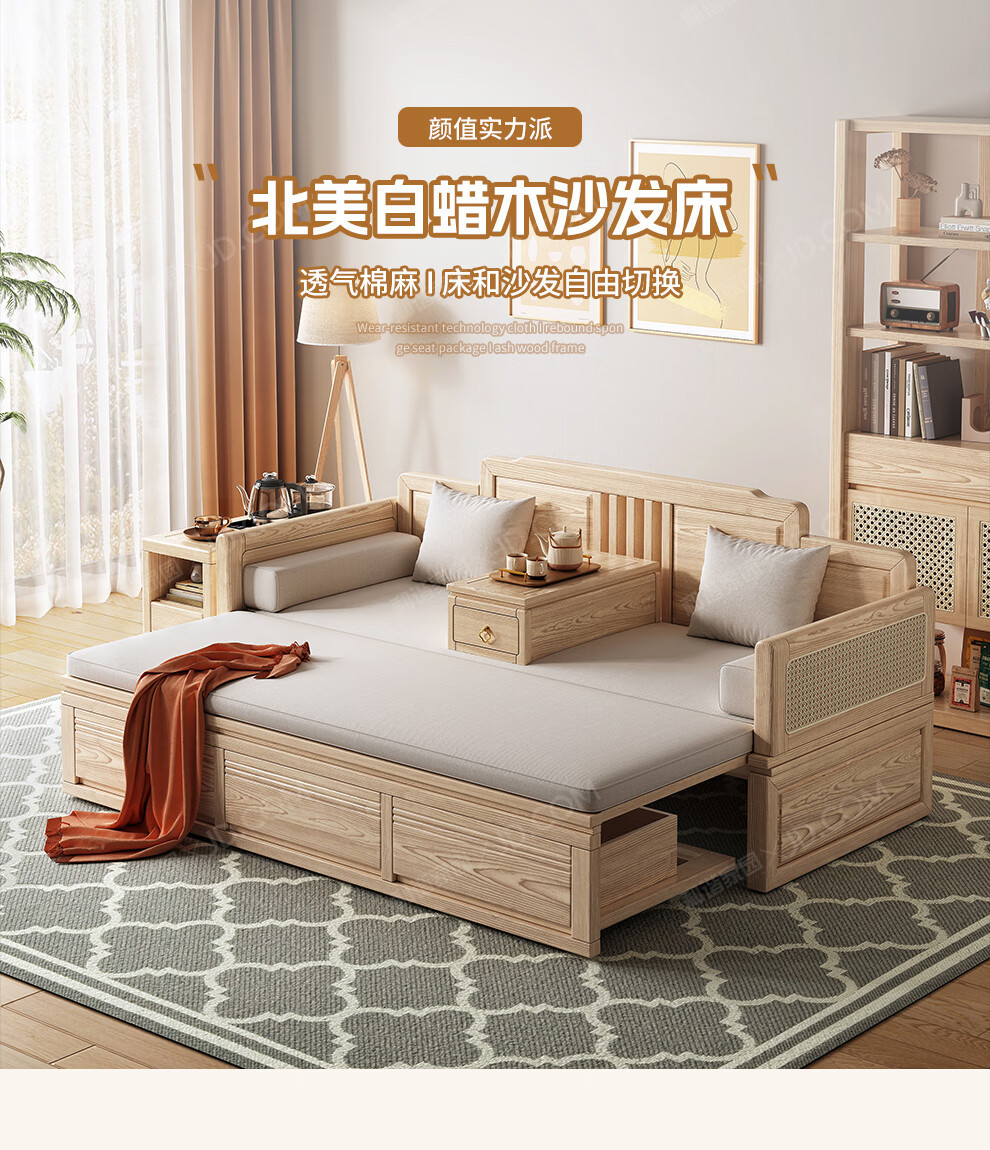 Кровать Лохань из ясеня, новая китайская стильная кровать из массива дерева, сдвижная, для небольших квартир, выдвижная кровать, простой многофункциональный диван-кровать