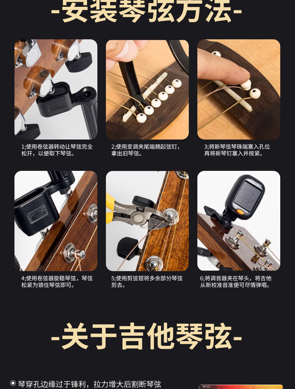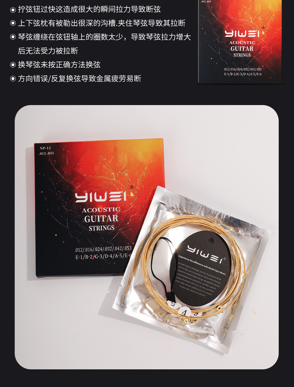 Струны для фолк-гитары Yiwei, латунные струны, набор из шести аксессуаров для музыкальных инструментов
