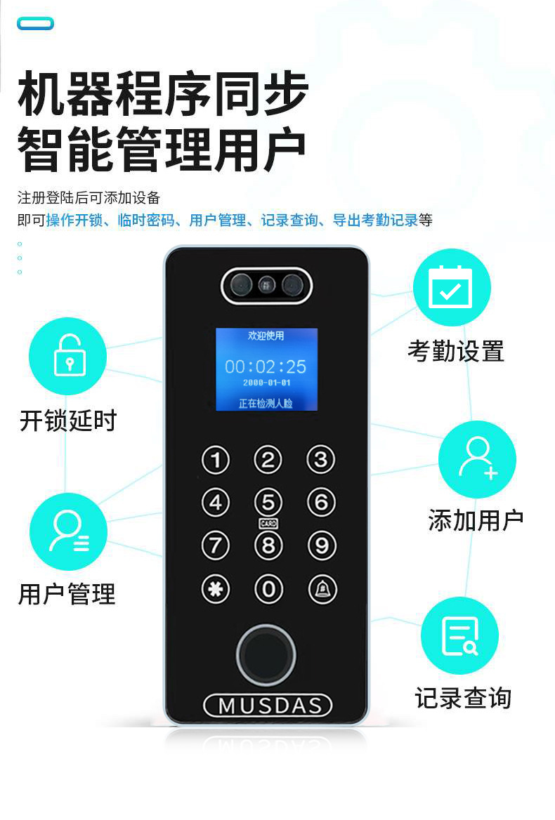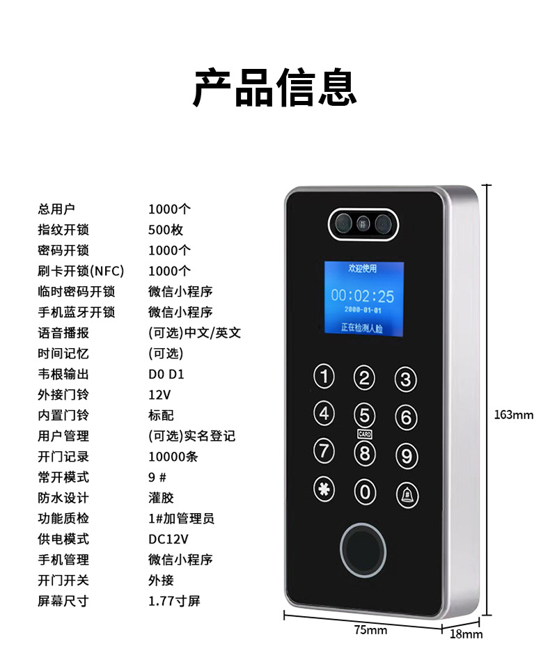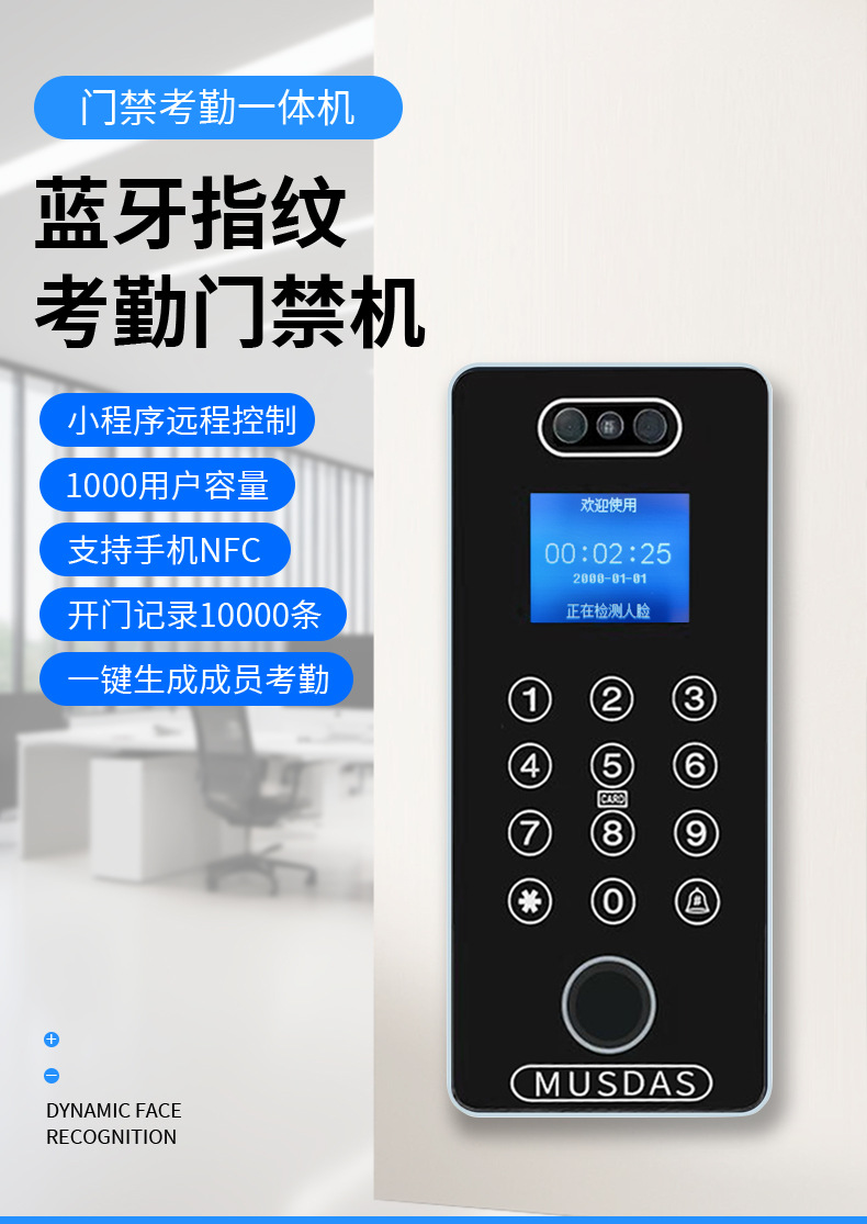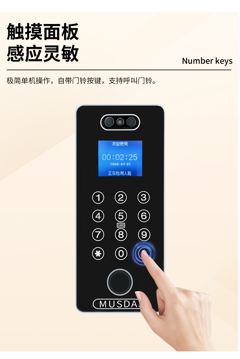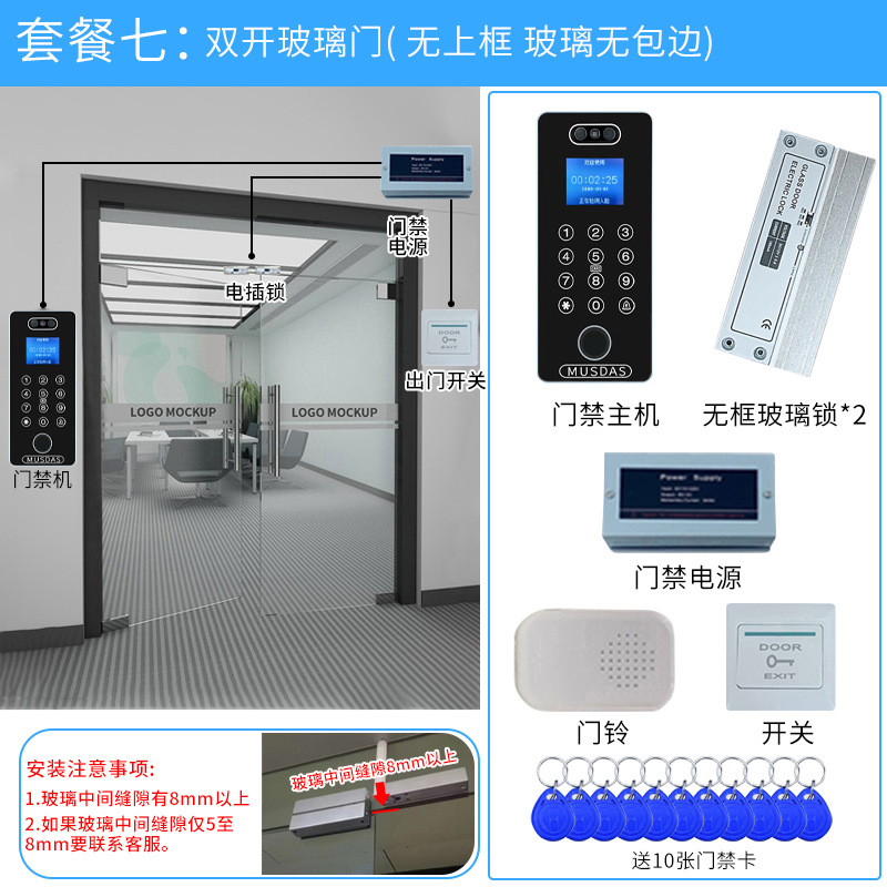 Замок для офисных стеклянных дверей с распознаванием лиц и отпечатков пальцев