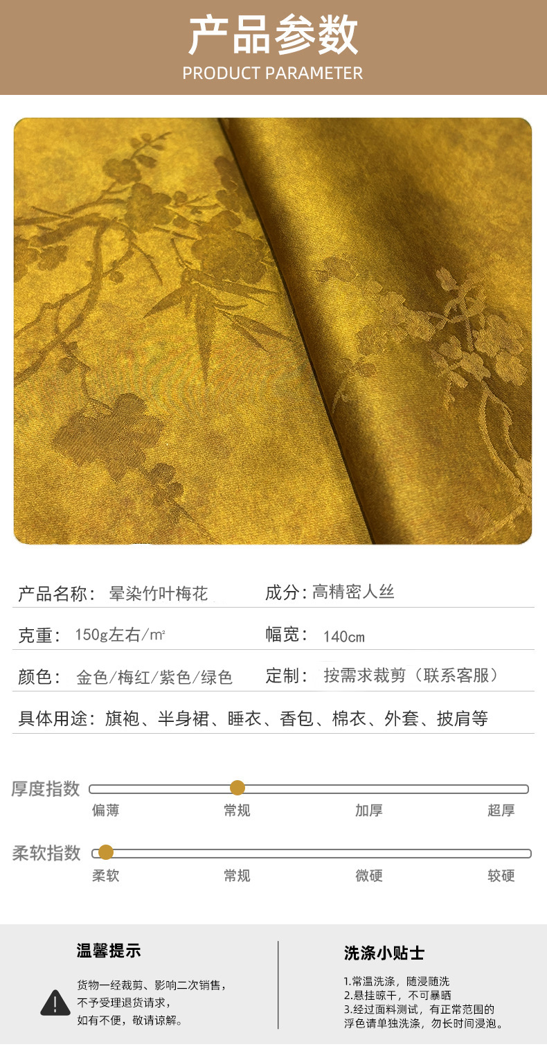 Ткань с узором бамбуковых листьев, новый чонгсам, жаккардовая ткань