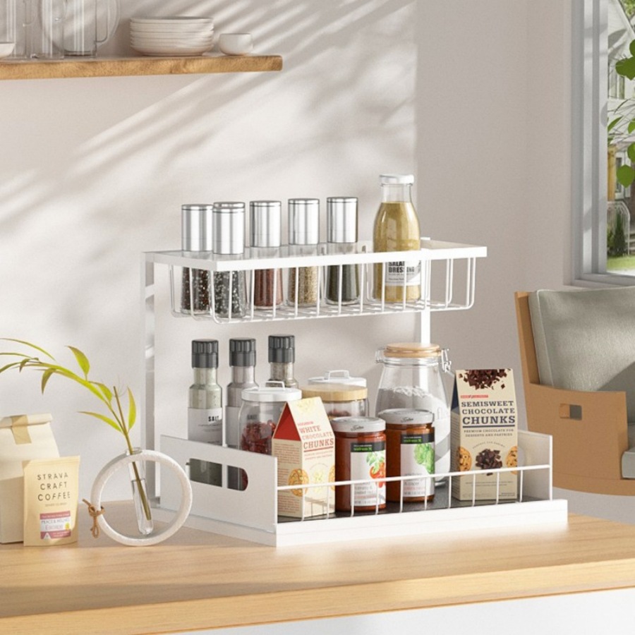 Многофункциональная выдвижная полка для хранения приправ на кухонном столе