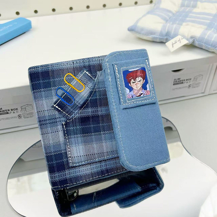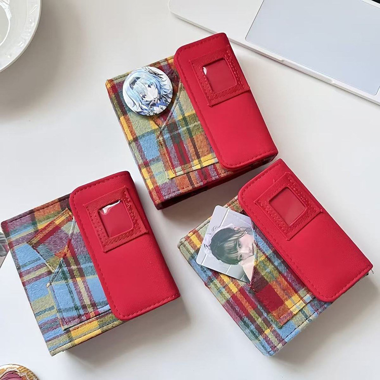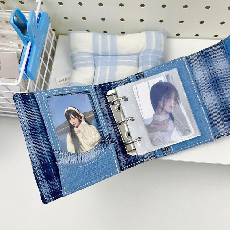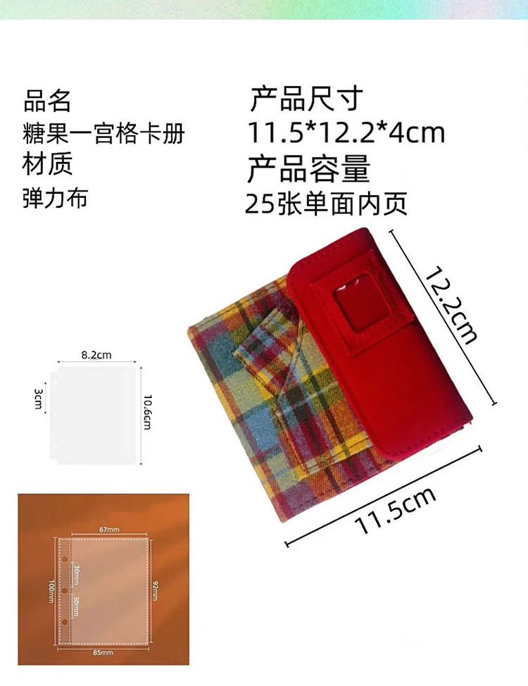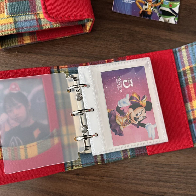 Маленькая красная книга, альбом для карточек, цветные синие и розовые клеточки, альбом для хранения звездных карточек, новый стиль ткани