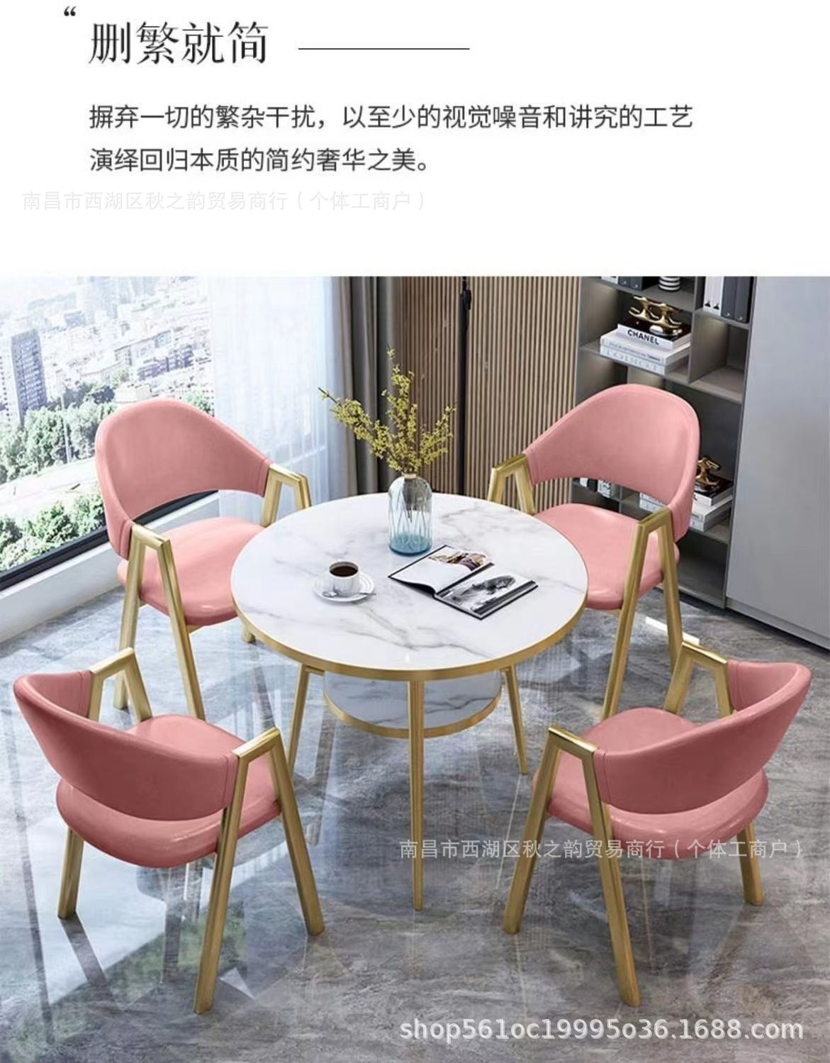![]() | Gold-edged double-layer round table + pink leather chairs | 80 diameter table and four chairs | ¥334.07 / ≈ 4 063 ₽ | 1000 | 5962995675976 | |