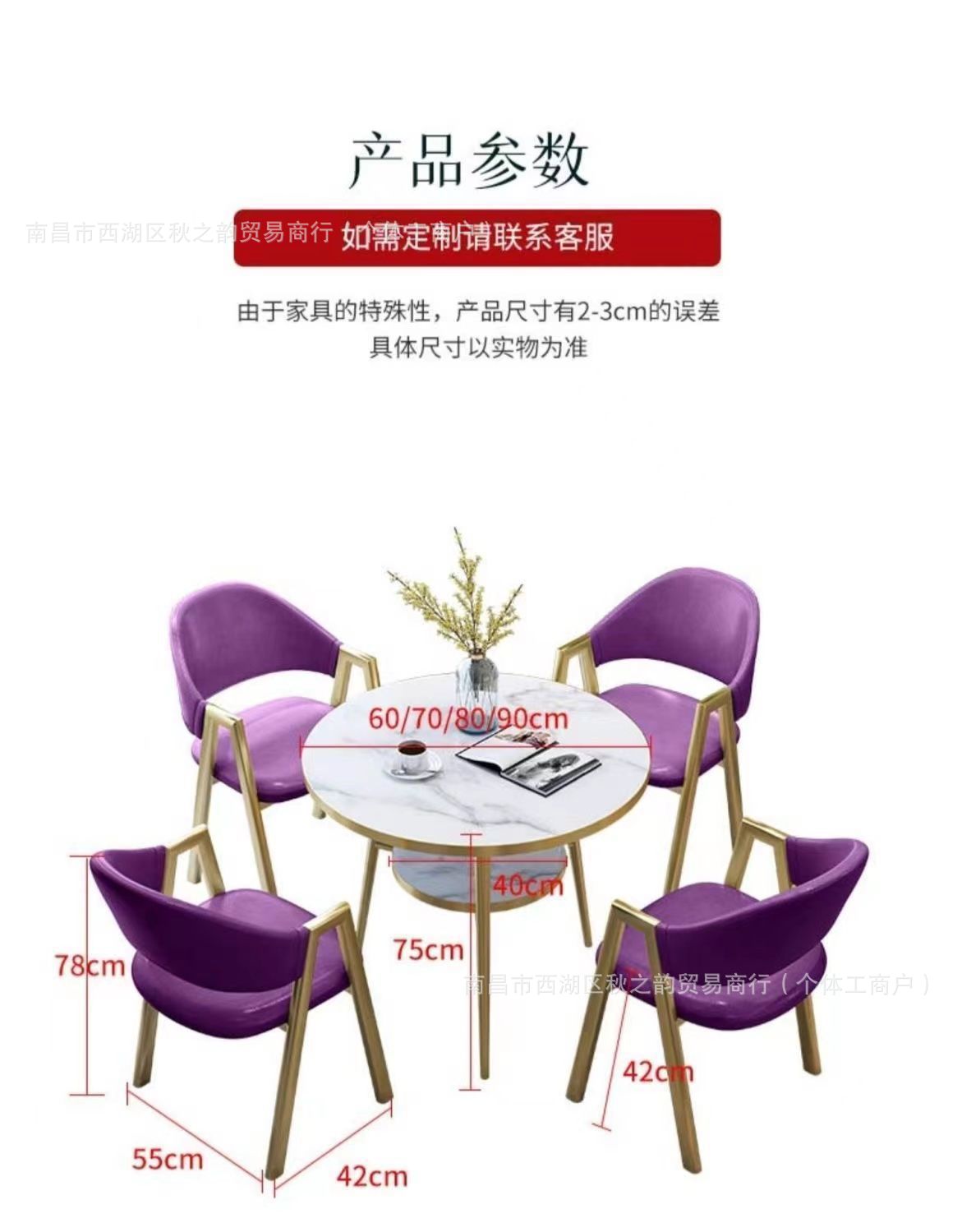 ![]() | Gold-edged double-layer round table + purple leather chairs | 80 diameter table and four chairs | ¥334.07 / ≈ 4 063 ₽ | 1000 | 5962995675992 | |