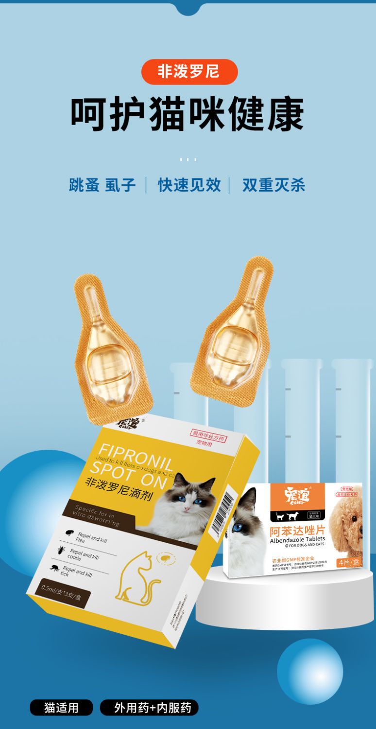 Дегельминтизирующее средство для кошек, внутренние и внешние капли, ветеринарное средство для кошек и котят, средство от вшей и блох