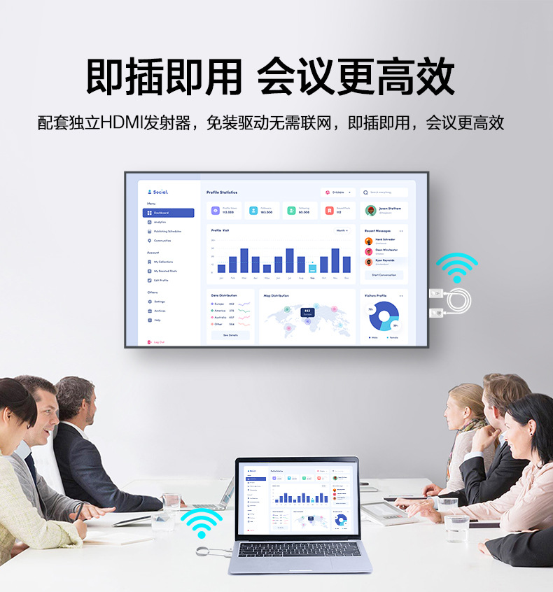 Беспроводной HDMI проектор, точка-точка, беспроводная передача, подходит для компьютера и мобильного телефона, конференция с дублированием экрана