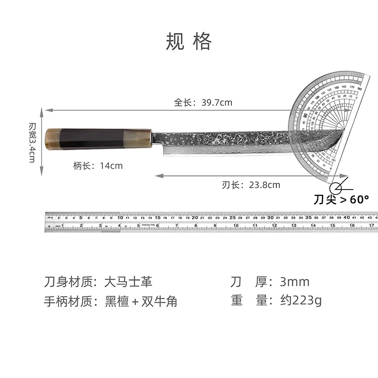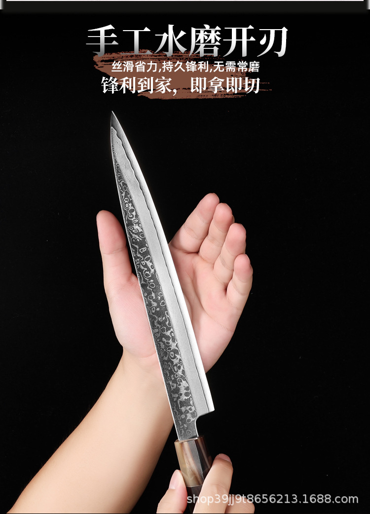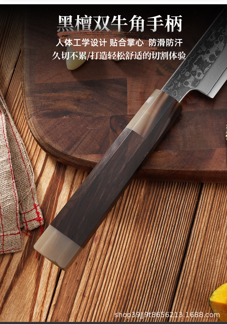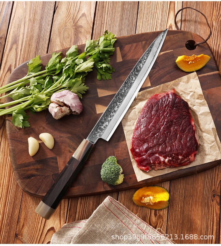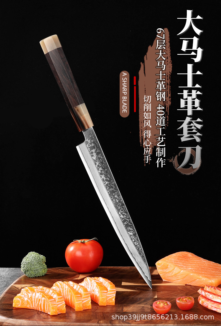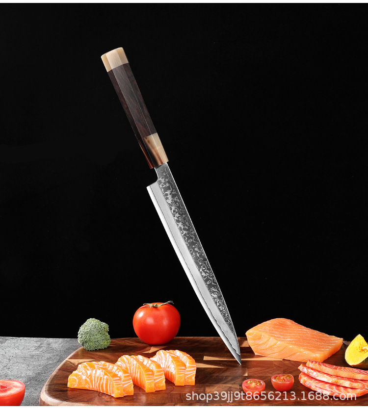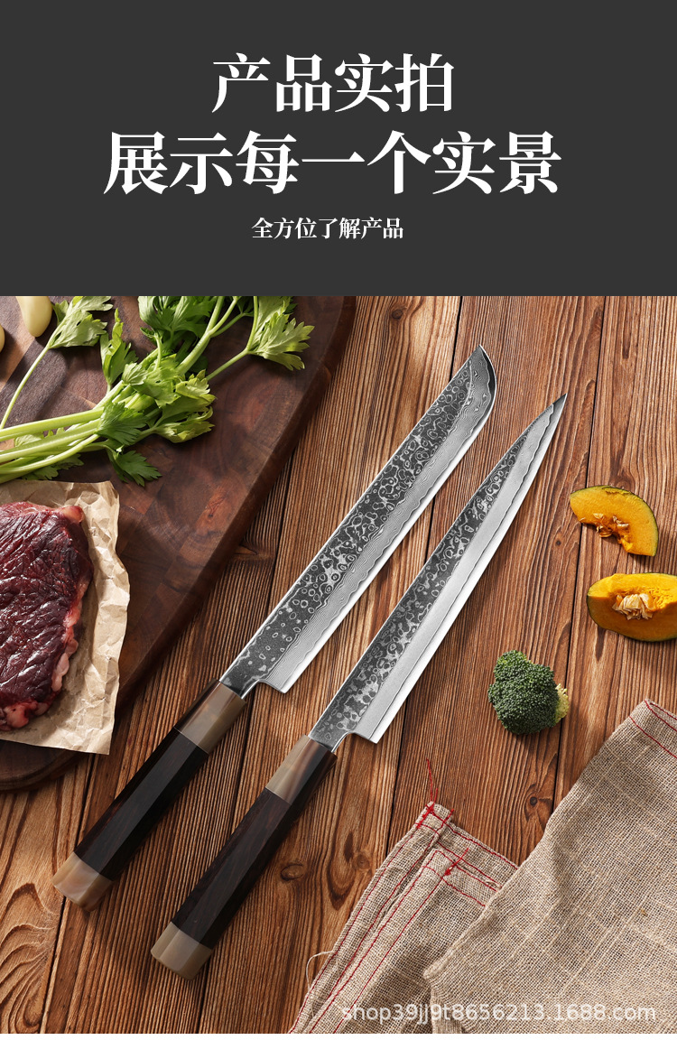 Японский кухонный нож с двойной ручкой, дамасская сталь, нож для нарезки суши